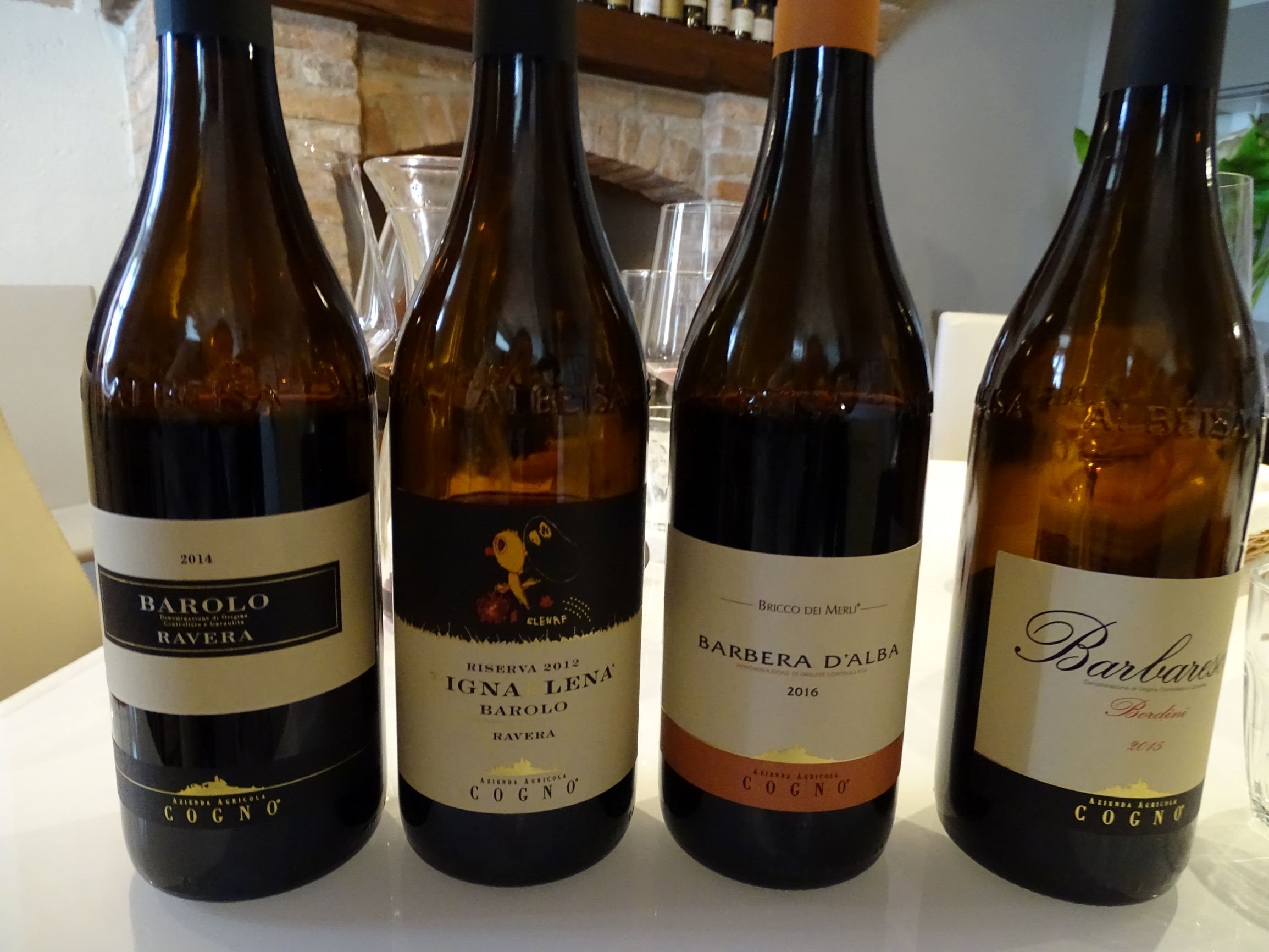 After we had tasted through the current Cogno line-up in bottle there was a discussion in our group about the merits of the Vigna Elena vis-à-vis the Bricco Pernice as Barolos. To give us a fair comparison, Valter headed down to the cellar and returned with pitchers of those two wines from the 2014 vintage to compare with our 2014 Ravera. That put the issue beyond any dispute …