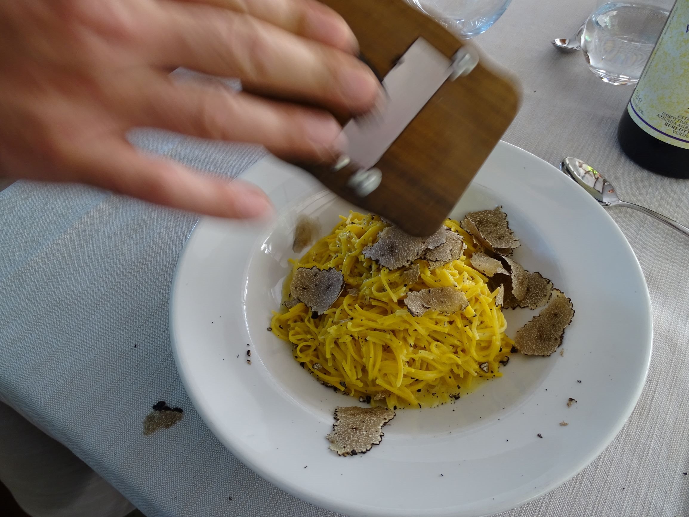 We had time between tastings for a leisurely lunch. We had a delicious lunch at Trattoria dai Bercau where we were also able to sample a couple more of the local Pelavergas. I had an excellent antipasto followed by a decent tajarin with black truffle. We all finished with the Trattoria’s brilliant pannacotta. This was followed by a lively debate of where Bercau’s version fits into the pantheon of the best Piemontese panacottas (the consensus: pretty high up).