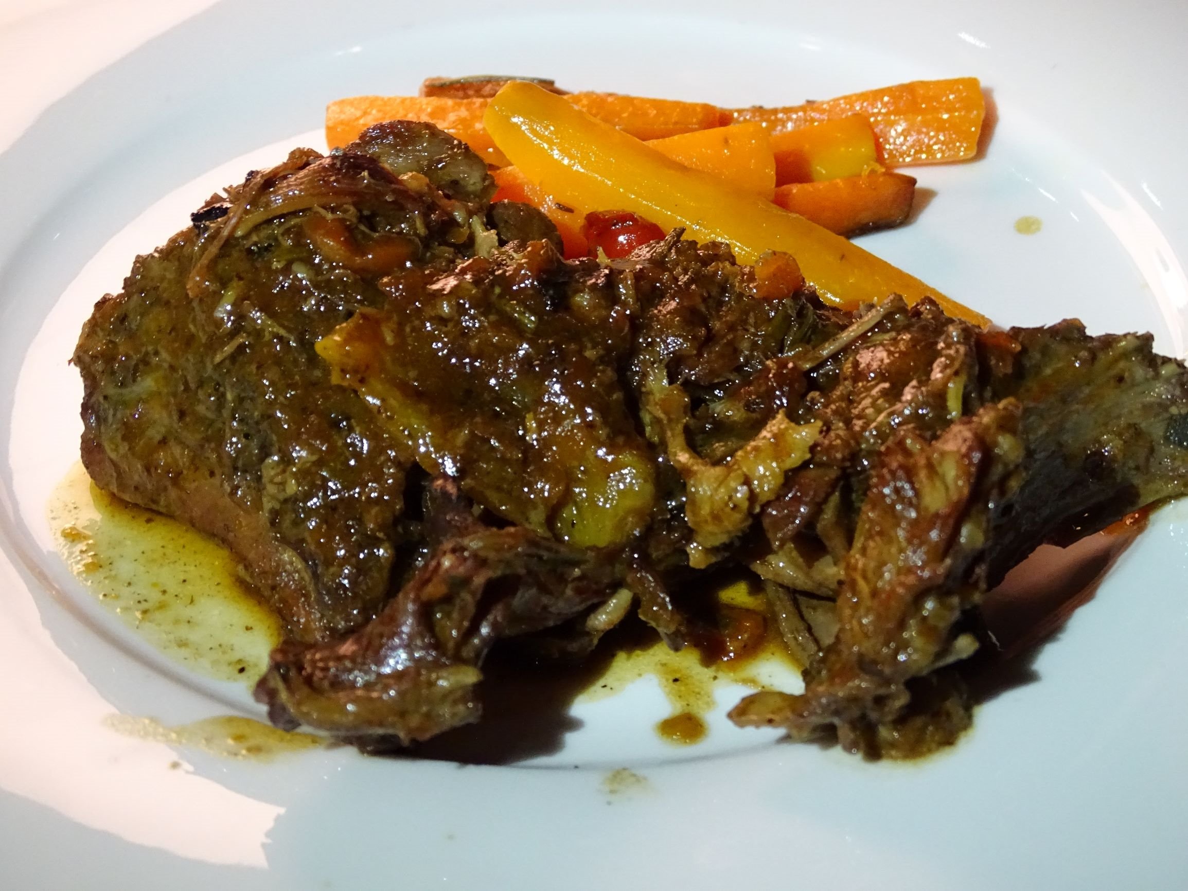 We bought this bottle on the basis of its good colour. It proved pretty sound. The bouquet dominated by citrus, I thought grapefruit. Also, damp soil, porcini, cigar, sweet smoke and dried red fruit. On palate, an evolved, honest and humble wine. The flavour profile was mushroom, earth, balsamico, preserved red fruit and tobacco. It paired very well with my rabbit main course. I agreed with Thierry in preferring this Produttori over the Cortese and in his saying “this is not better than the 1974 Produttori Normale we had on our last trip”. I did however prefer this 1982 over the 1978 Produttori Normale we drank earlier on this trip. Excellent!