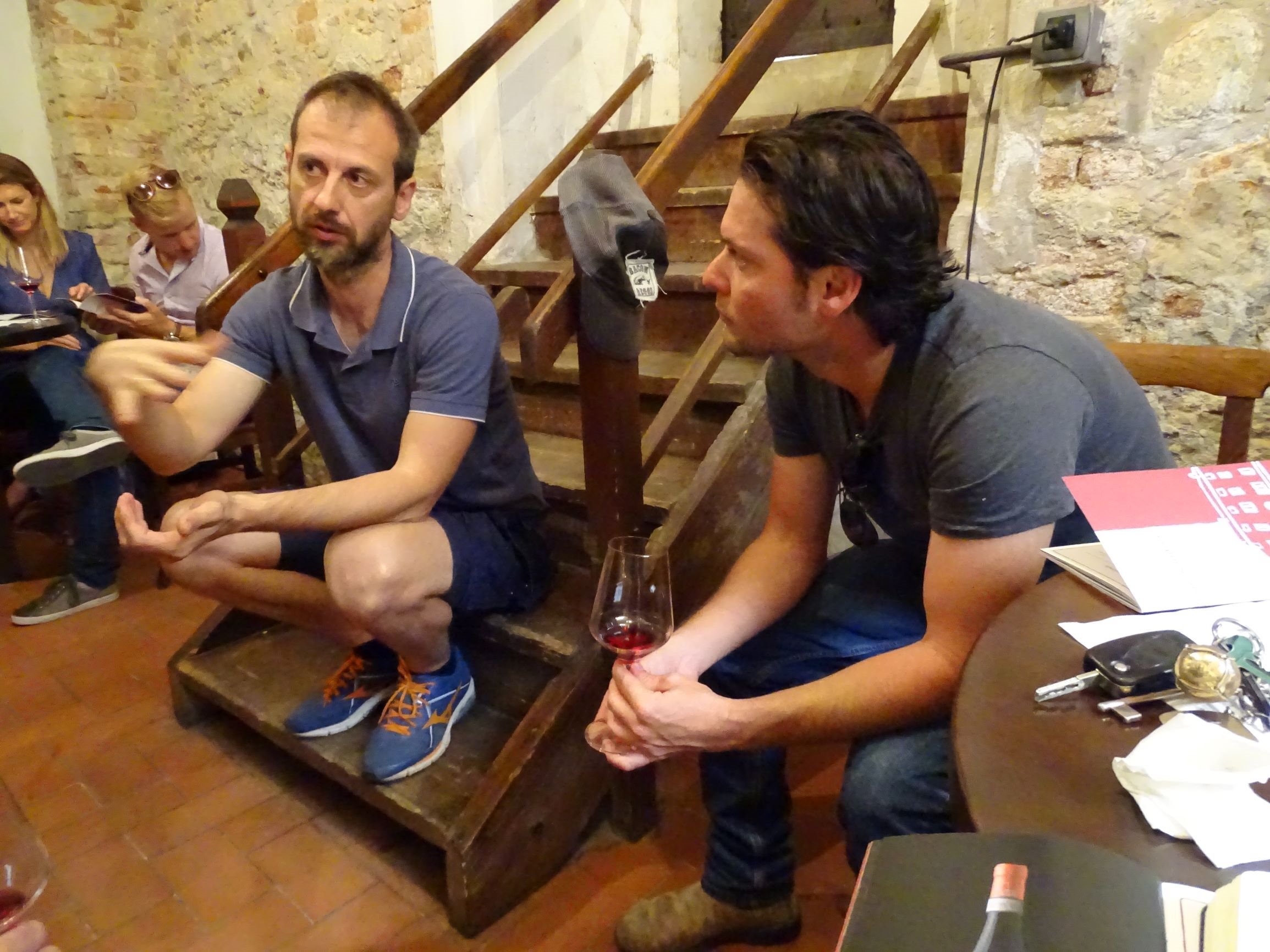 Ten days on skins for the 2016. Vivid maroon colour. An exuberant, slightly feral bouquet of wild berries, fresh and dried herbs, bloody, smoky barbequed venison, dark chocolate and black fruit. Very intense and powerful in the mouth. Seamless, not all rustic, I thought. In proportion and balance. Fresh acidity. An excellent Freisa. “This Freisa will age”, said Fabio. Referring to the common genealogy with Nebbiolo, Fabio stated: “Freisa is the country cousin, Nebbiolo is the city cousin”, which I thought was a little tough given the quality of his Freisa! Jeff and Fabio then proceeded to try to list all the Piemontese Freisa producers (concluding there were something like 9-11 such producers).
