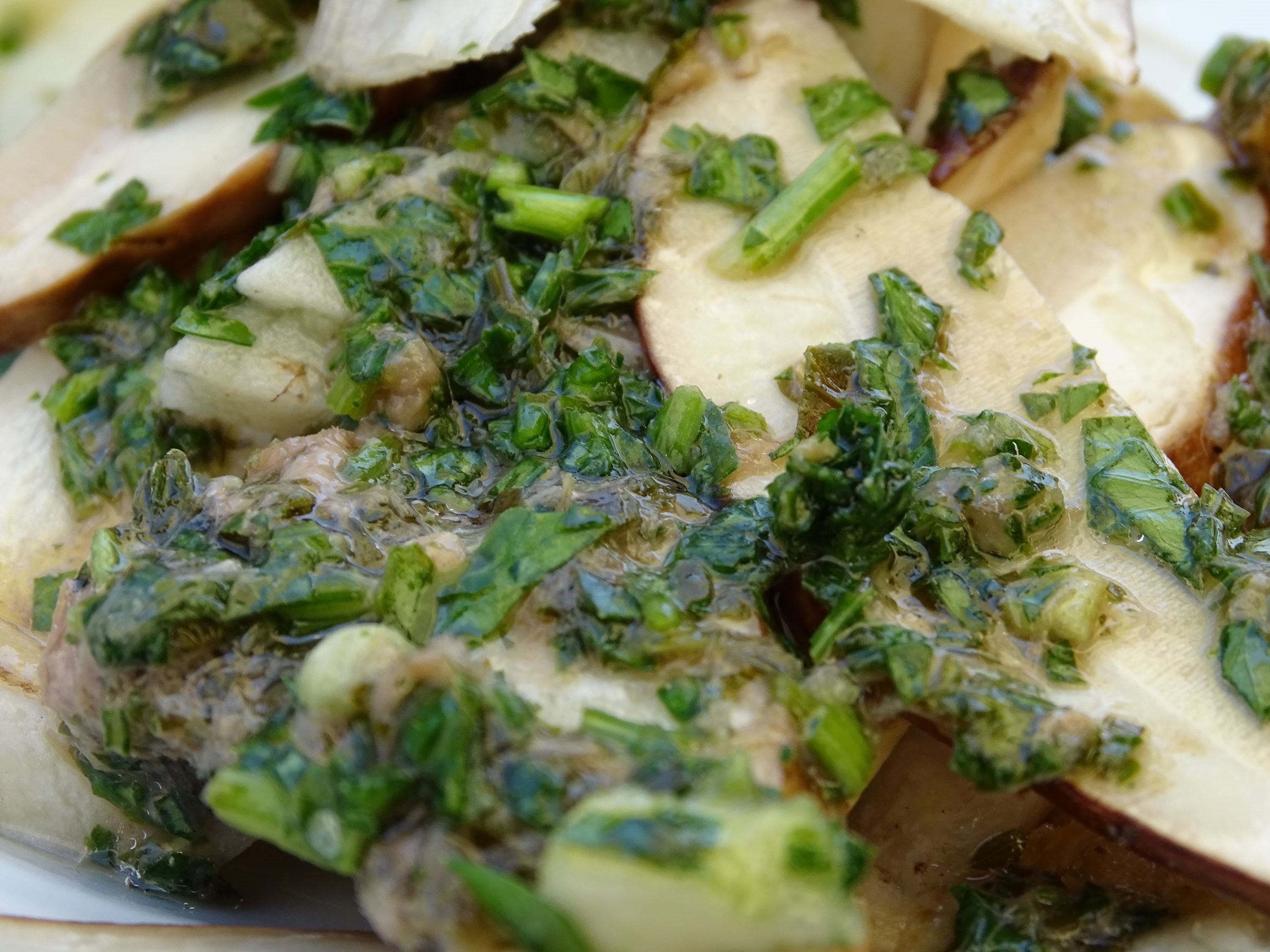 Served blind by Jeffrey. An unusual bouquet I could not place. Herbal infusion or camomile, I thought. “Glazed Christmas leg of lamb”, said Thierry. On palate, dried herbs with limes and oranges and also candied citrus fruit. It put me in mind of cold herbal tea and reminded Andrew of Asian sweet and sour cooking. Clearly an evolved wine, I guessed a vintage of 1998. We were all surprised by the grape variety and how this wine had developed. Marchesi di Grésy’s oldest Sauvignon Blanc vines were planted in 1988. It paired well with my excellent Porcini Tajarin.