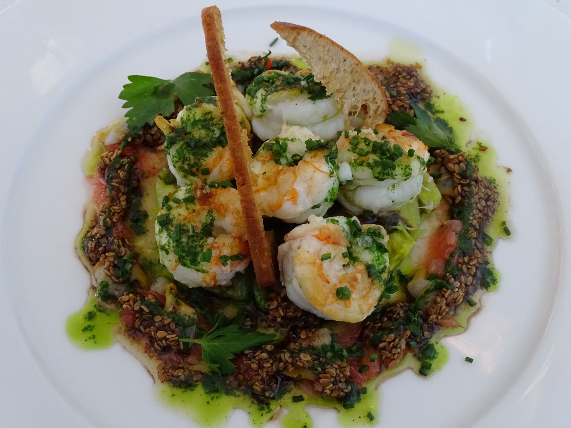 Pale gold. On bouquet, “more lemons and limes than stone fruit” (as Mark said). I thought more limes than lemons, with touches of greengage and green and yellow apple. Also cinnamon and other baking spices and minerals with breath of vanillin oak. On palate, that signature rich, fully ripe fruit, with sparkling acidity. It was surprisingly rich and opulent for a 2013. The tensile acidity cut through the fat in the cuisine. Lemon and lime citrus, green apple, pear and chalky minerals. Layered and complex. Brilliant! Drink or hold.
