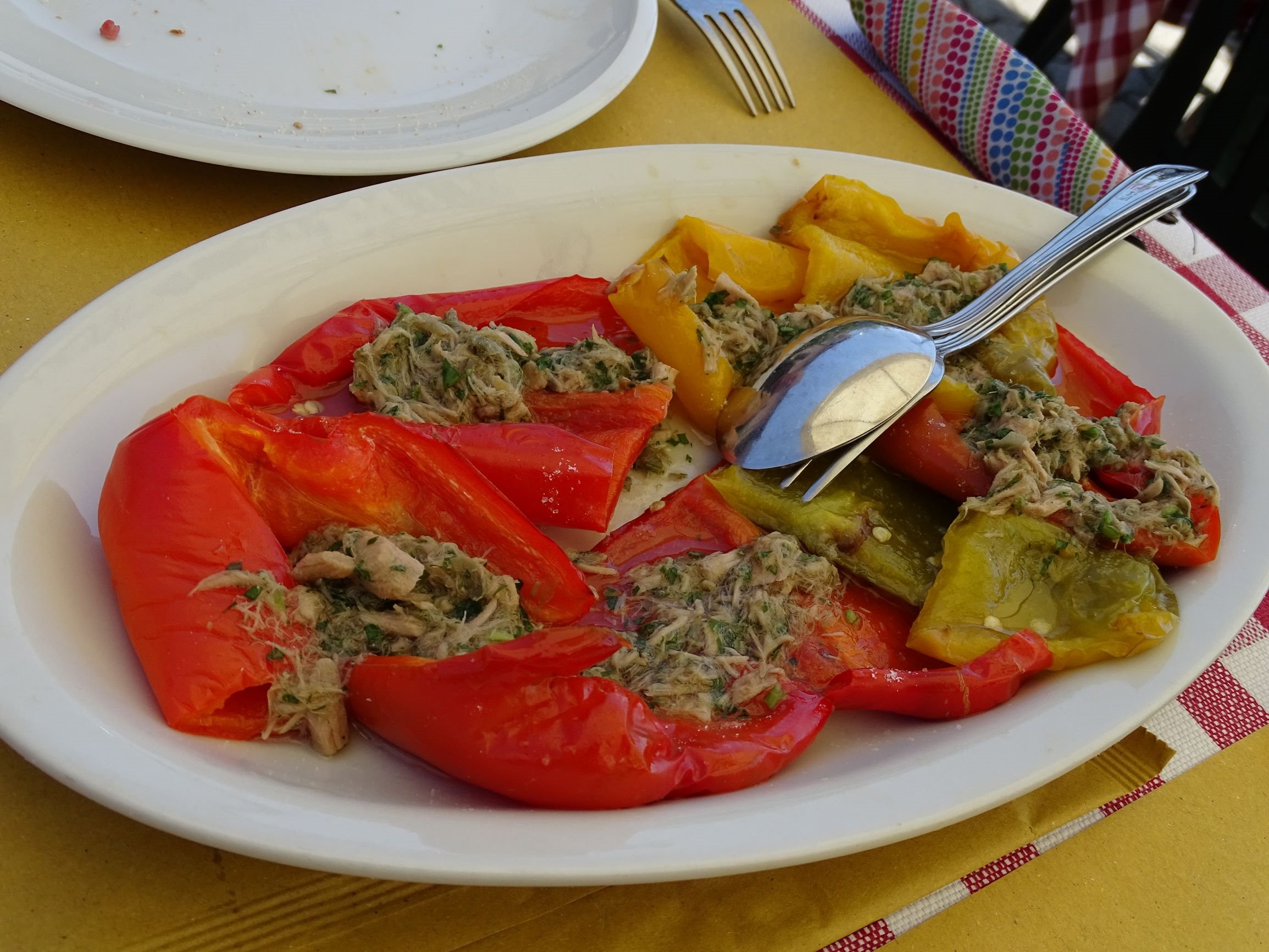 We started with a bianco. This wine is a local version of Vermentino. I doubted it had seen any oak. After some reduction on opening, there were aromas of pears, minerals and citrus fruit, with suggestions of tide pool. On palate, the light bodied wine showed lively acidity. Lemons, limes and grapefruit finishing on some minerality and salinity. A nice, basic thirst quencher.