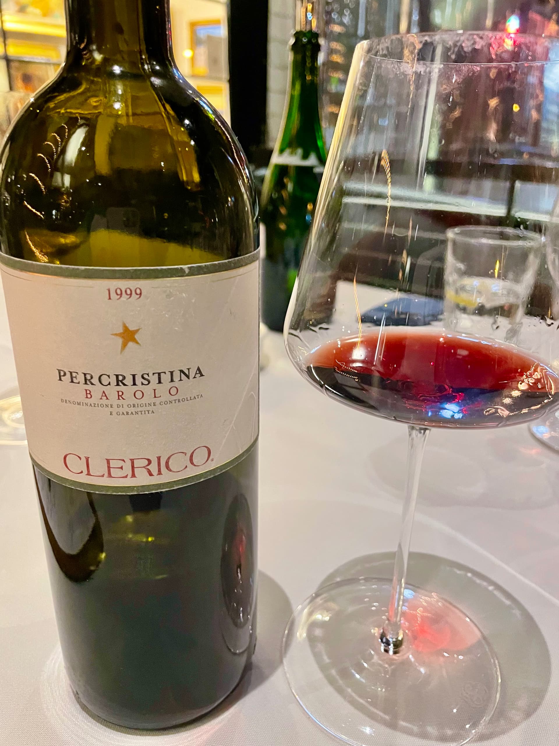 1999 DOMENICO CLERICO PERCRISTINA BAROLO- blind; decanted 5+ hours; the color was dark red purple and the mellow nose had some mild spicy red raspberry and later on, some mocha, tobacco and coffee accents; all of this continued on to be joined by lovely blackberry and red cherry; as the spice component expanded, it became a taste treat from heaven; this wine had elegance, charm, sophistication and class; minimal dryness was experienced in the after taste; I first thought this was Sangiovese and was leaning toward Fontodi Flaccianello, but the last tastes seems to suggest Nebbiolo and I picked 2010 vintage with no clue as to who the producer was.