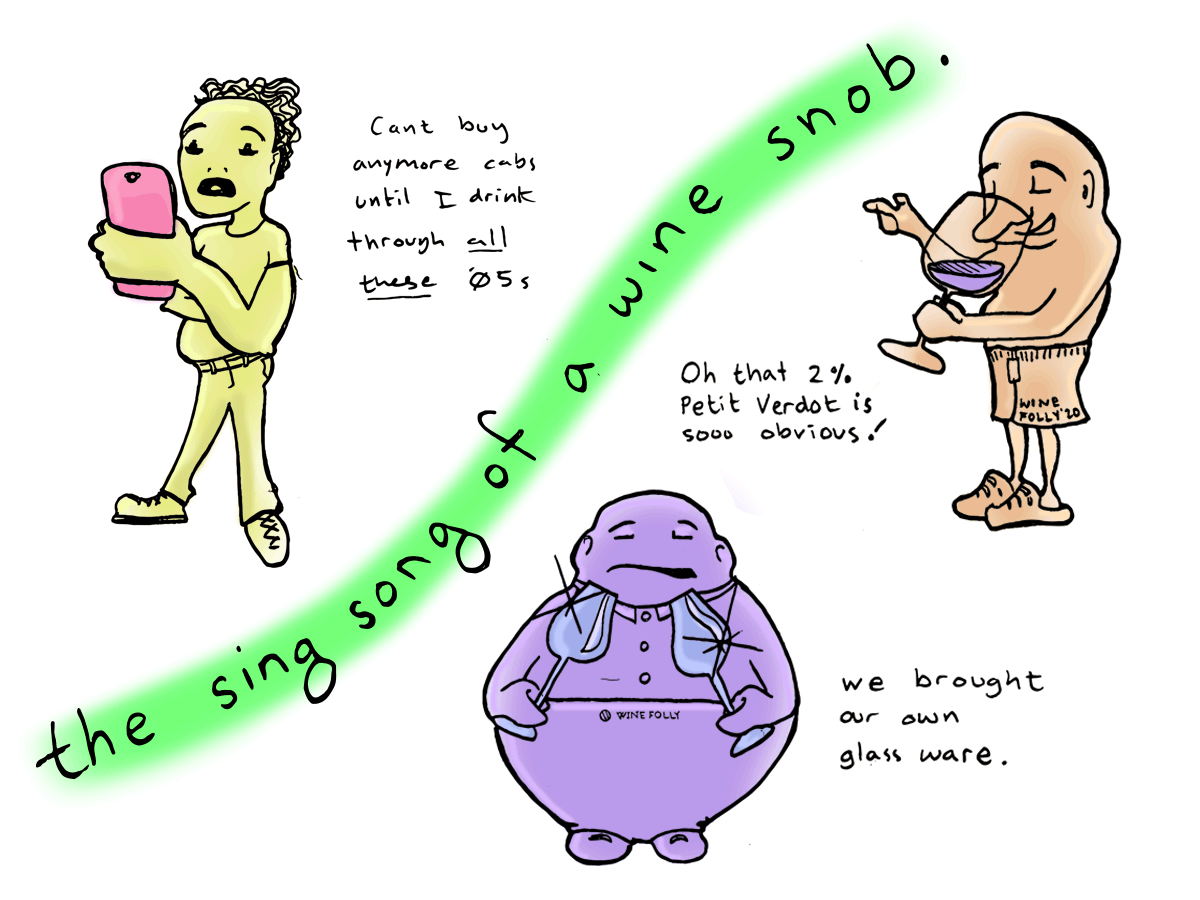 Does no one else notice that in many of these, the wine snob is the speaker kicking down on someone else’s ignorance. And, of course, none of us are ever like that.