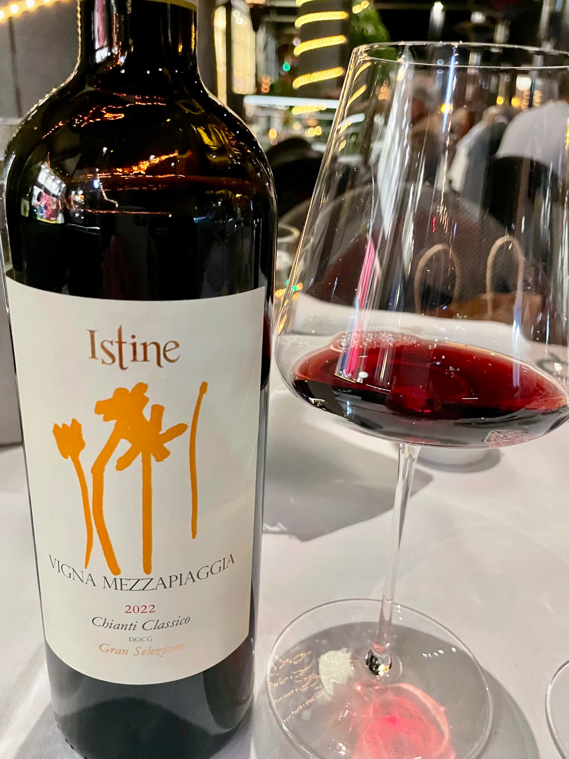 2022 ISTINE VIGNA MEZZAPIANZA GRAN SELEZIONE CHIANTI CLASSICO- it had a youthful dark red purple color and aromas of ripe red and dark fruit with cranberry, black raspberry and blood orange most dominant; the taste profile had more of the same plus some chalk, anise and saline accents to the plum and red currant that joined in; it was easily approachable out of the gate and held a steady course over the next hour.