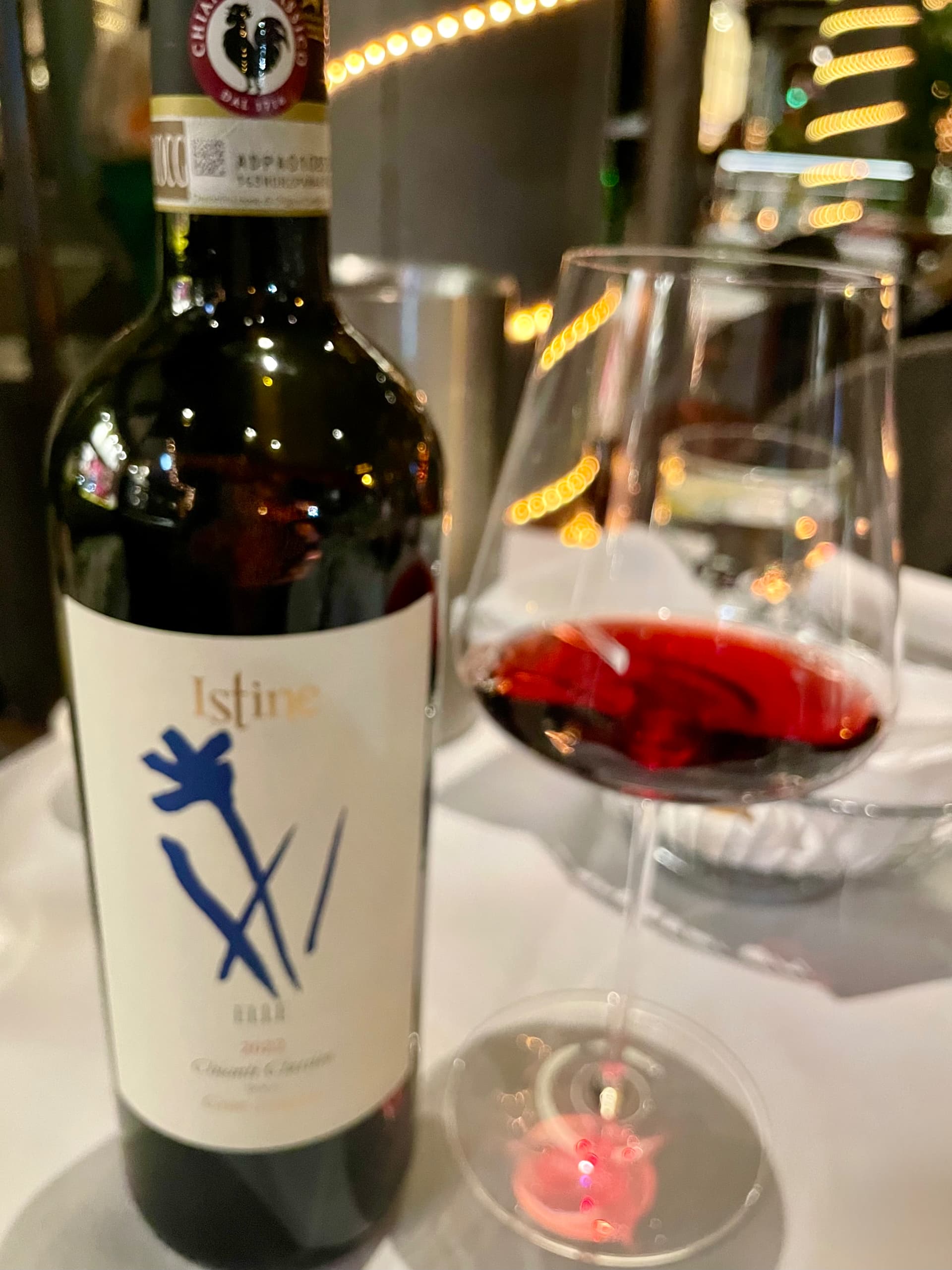 2022 ISTINE ELLE GRAN SELEZIONE CHIANTI CLASSICO- the color was a youthful medium red purple and the nose offered an abundance of fresh and ripe fruit with cranberry, red and black cherry and blood orange; the tannins were pretty stiff and not yet integrated and it finished dry with all of the fruit in the dried form; after at least 30 minutes, it softened and became much less astringent and much more pleasing, in fact, I ended up liking it just a bit more than the Vigna Mezzapianza.