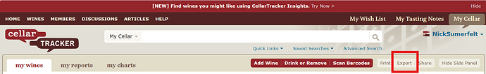 Found it. I don’t use the full version of CellarTracker, just mobile and the app. Maybe reference the export location on the full site?