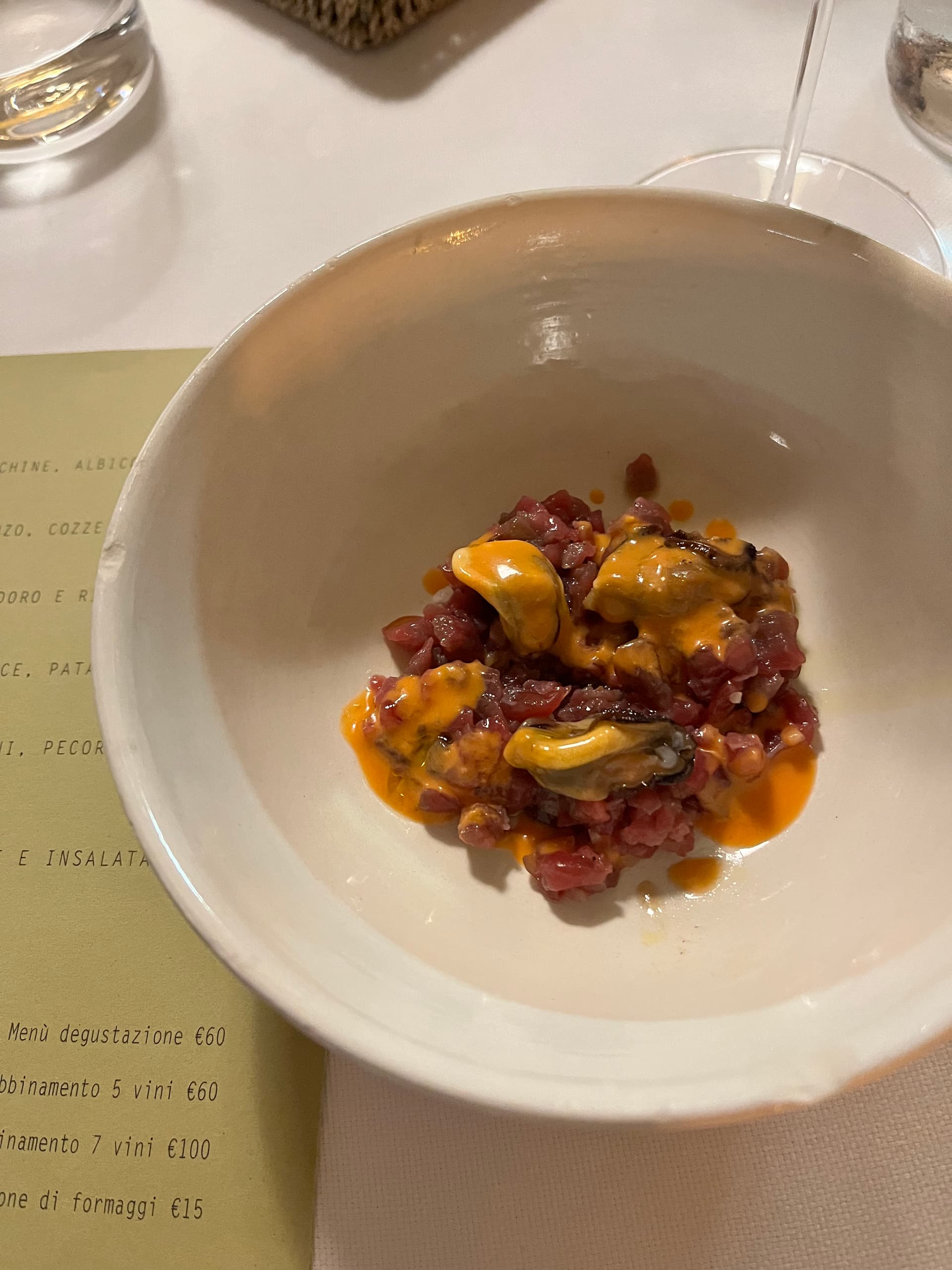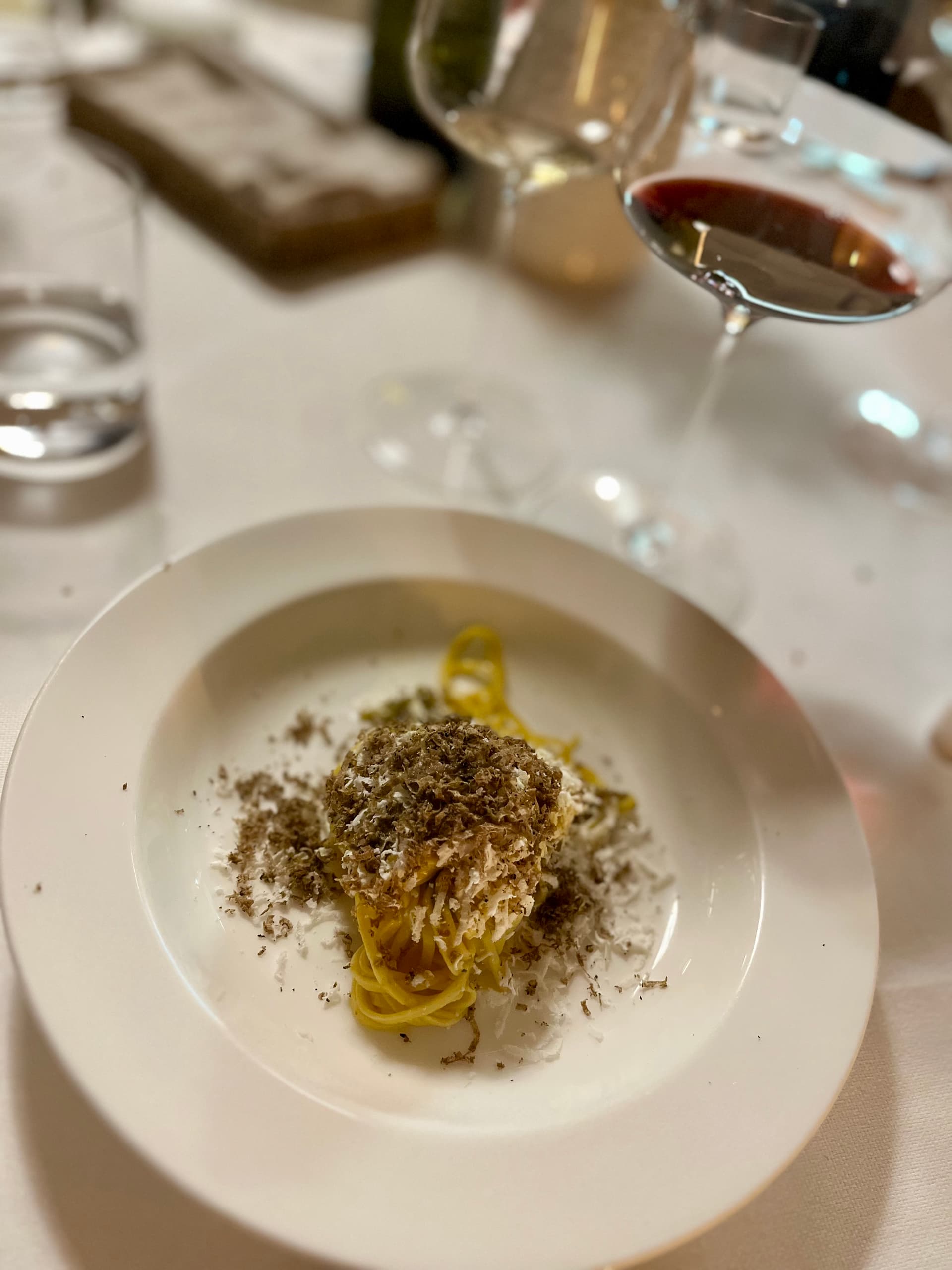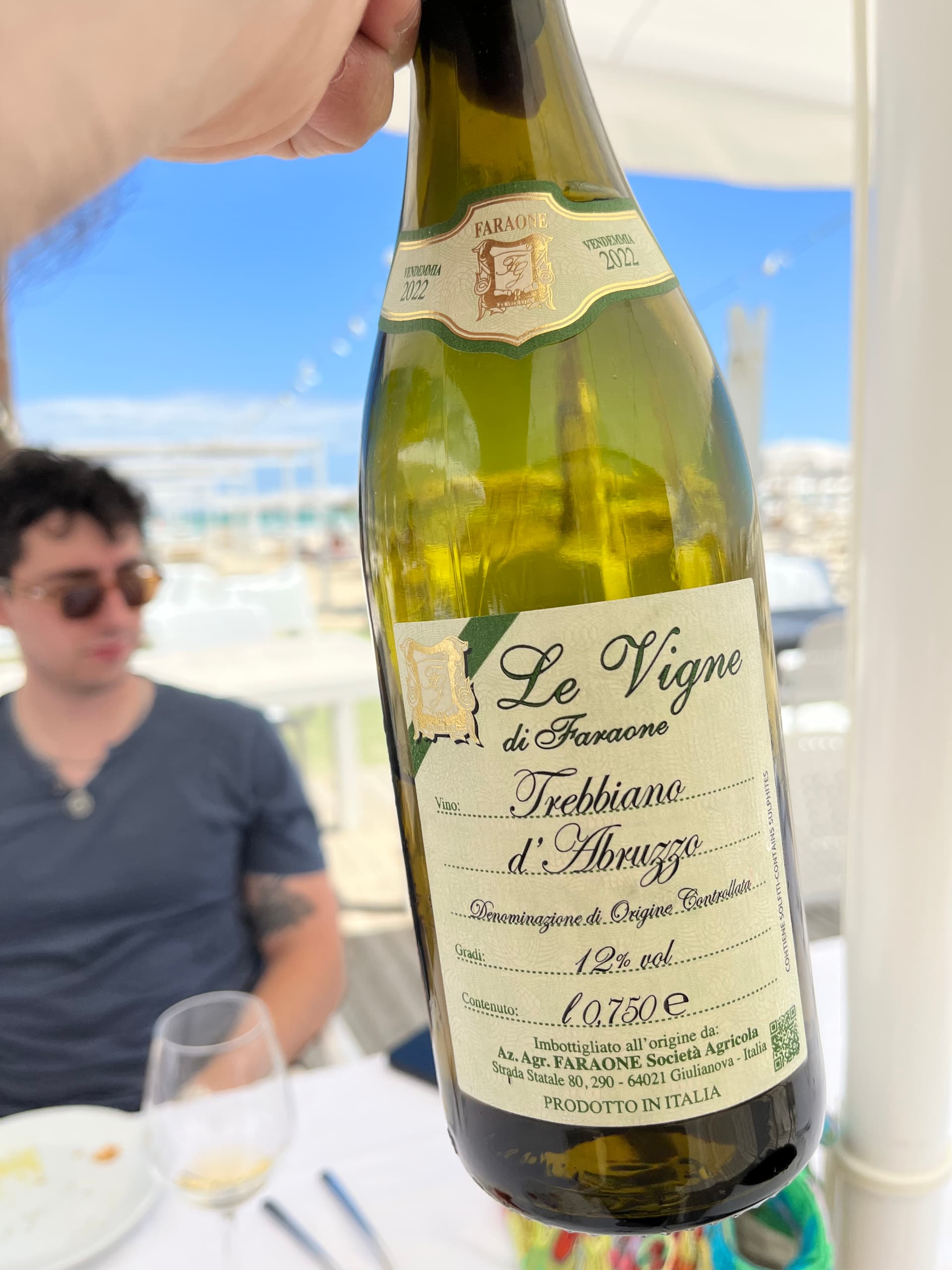 Pro tip- it’s an easy 2.5 hour drive from Rome, but we figured, why not take a break for lunch on the beach along the way? We stopped in Guilianova (just pick a beach town) for lunch, and then it’s an easy 30 minutes up the hill from the beach to Pepe. Lunch at Novavita Beach Club. It was fine. They had Pepe on the list for $40, but considering that’s where we were headed- we had this little local number that was quite good with squid ink pasta and other seafood stuffs.