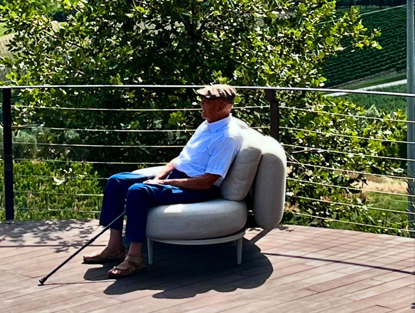 We arrived around 2:30- After checking in I walked out on the patio and was able to chat with the man himself for a minute after Elisa brought him down to the gardens (he’s declined a good bit the past year, unfortunately, but not bad for 92!). We shook hands-exchanged buona sera and I proceeded to tell him how much his wines meant to me. He understood half of what I was saying, but he smiled and nodded, and then I let him enjoy his view.