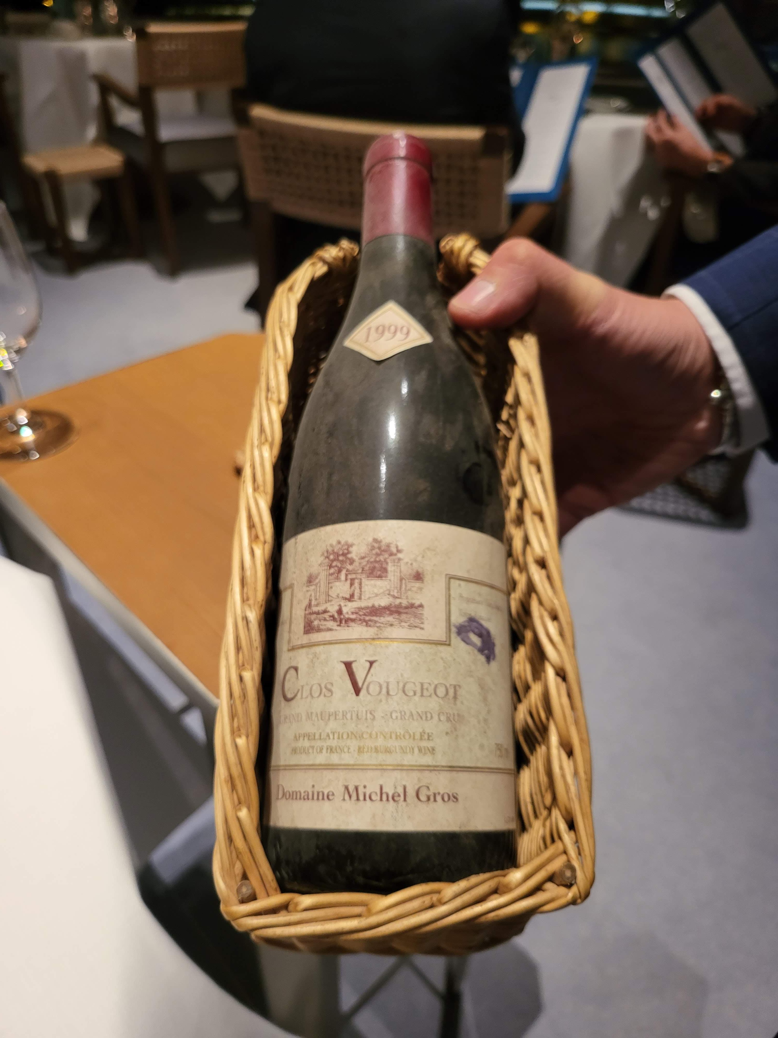 My wife and I have eaten at the table of many of the great chefs in France over many years, and we agreed that this was one of our most fun (and anticipated) dining experiences. The food was terrific, as advertised with the reopening. We had just spent two weeks in Burgundy, so I had pre-decided to change gears from burgundy to northern Rhone for the duck main. After the obligatory glass of champagne and white wine I chose a bottle of 2004 Jamet which was in the middle of about 8 different vintages of the wine on the list. I think it was 325 euros which I thought very fair.