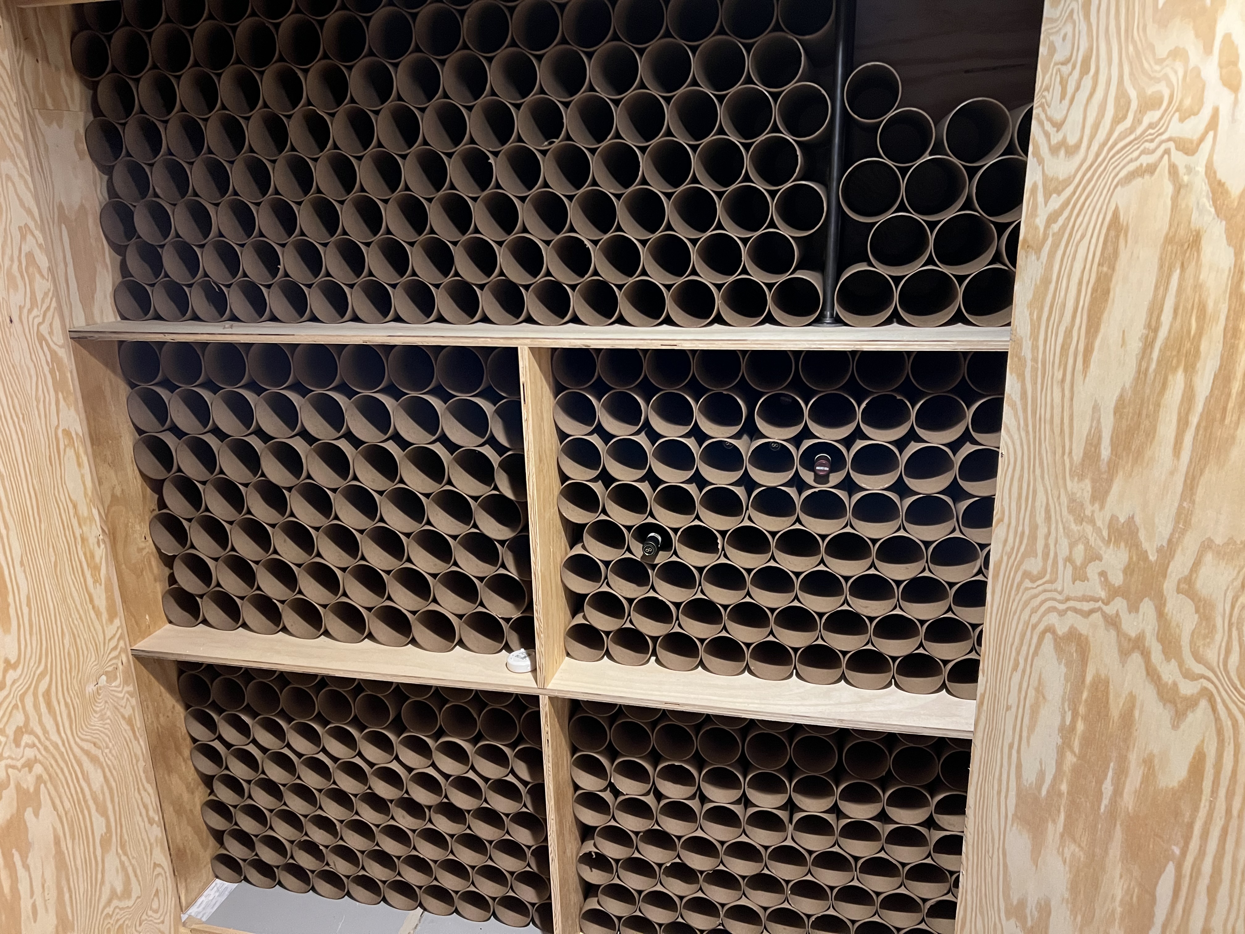 I recently finished converting a basement closet in to an actively cooled cellar (and before somebody asks, yes, I used a vapor barrier and insulated). I was going for maximum storage efficiency in a small space. For me, this meant minimizing space taken up by non-utilitarian racking. In reading this board, I came across several threads that had bits and pieces of information. Sometimes that information came down-thread from a related topic like PVC tubes or general cellar organization.