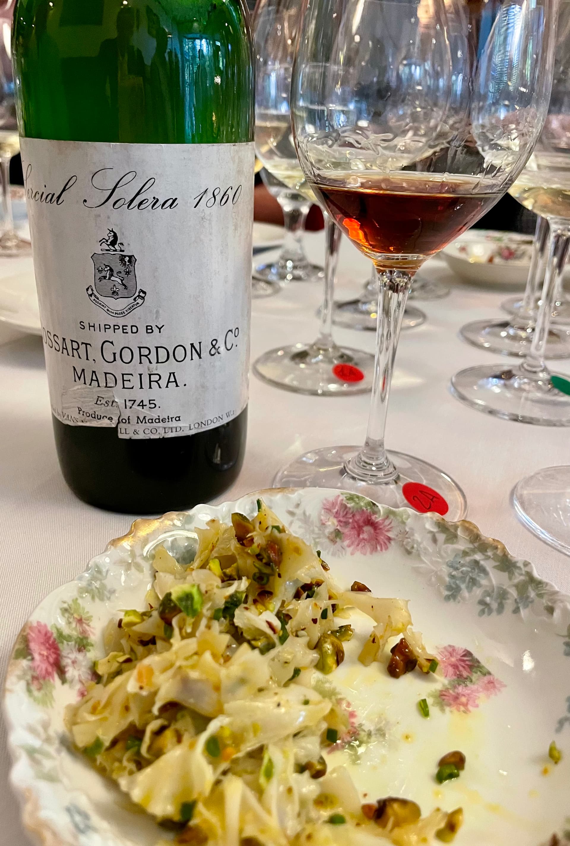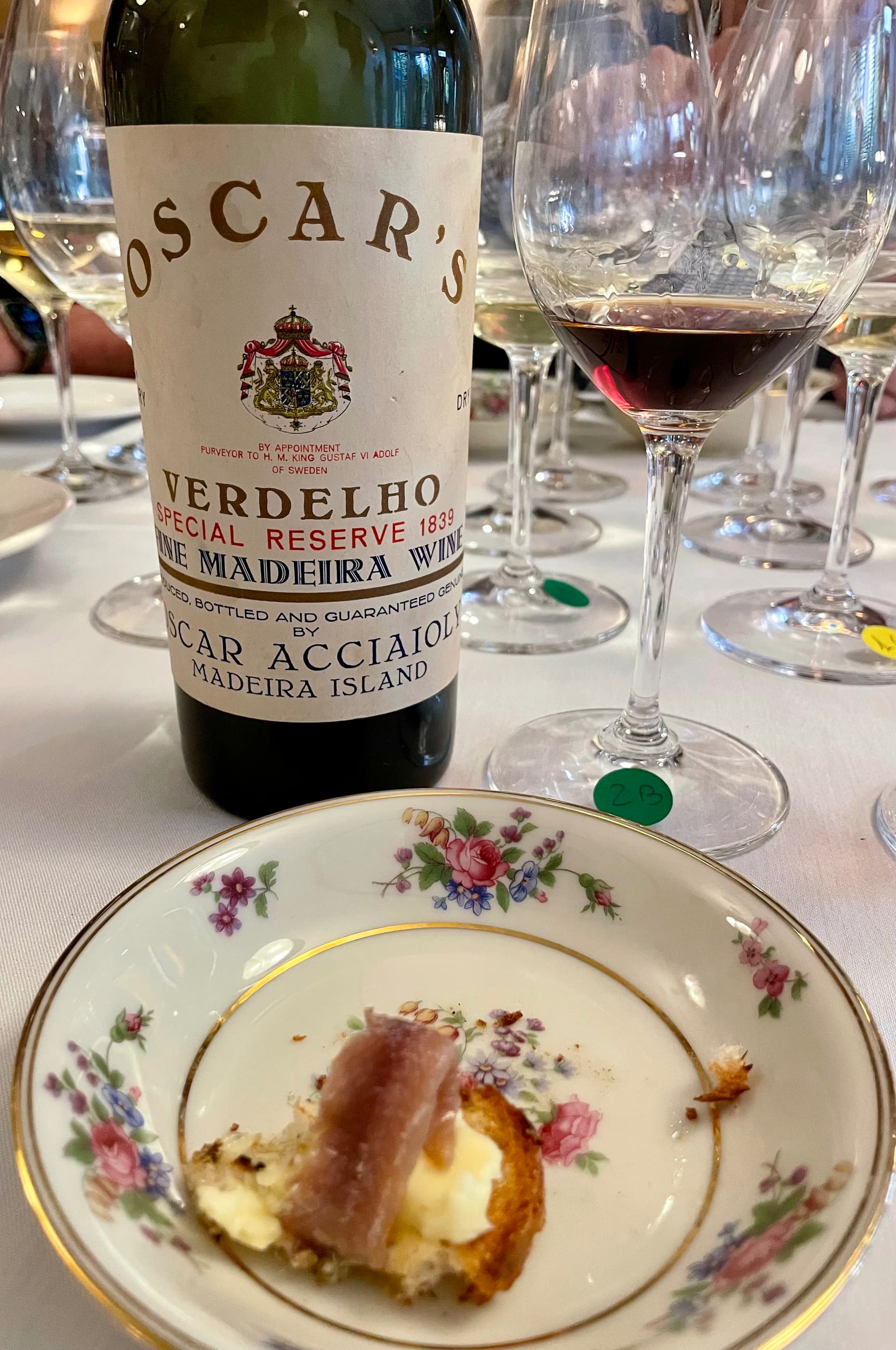 1839 OSCAR’S ACCIAIOLY MADEIRA VERDELHO SPECIAL RESERVE- blind; it had a red copper, maple color and serious and intense aromas of nutty, caramel laced red cherry which also made up the majority of the taste profile; it seemed to be perfectly sweetened, not too much or too little and seemingly was the perfect Madeira that one could sip forever.
