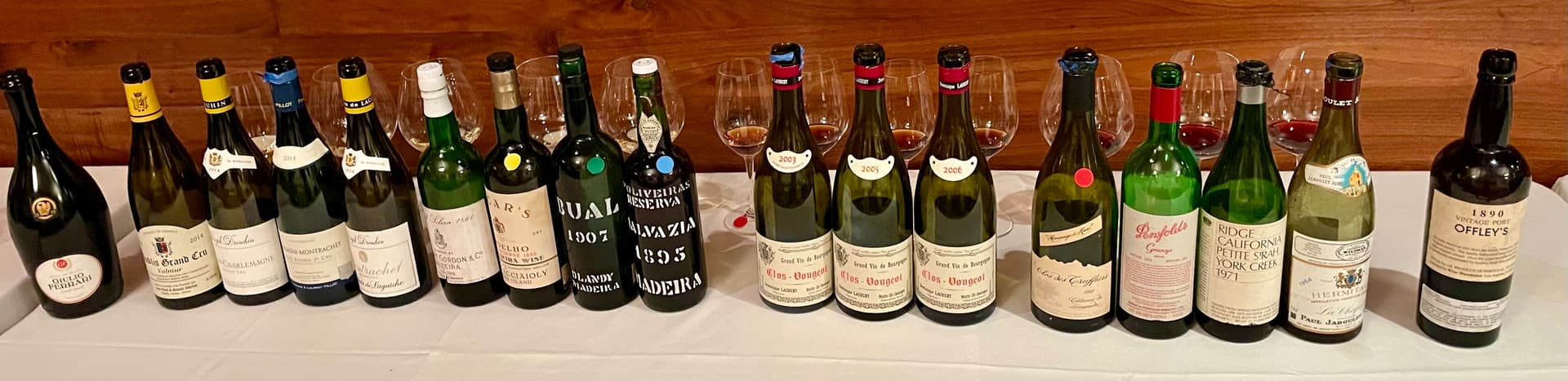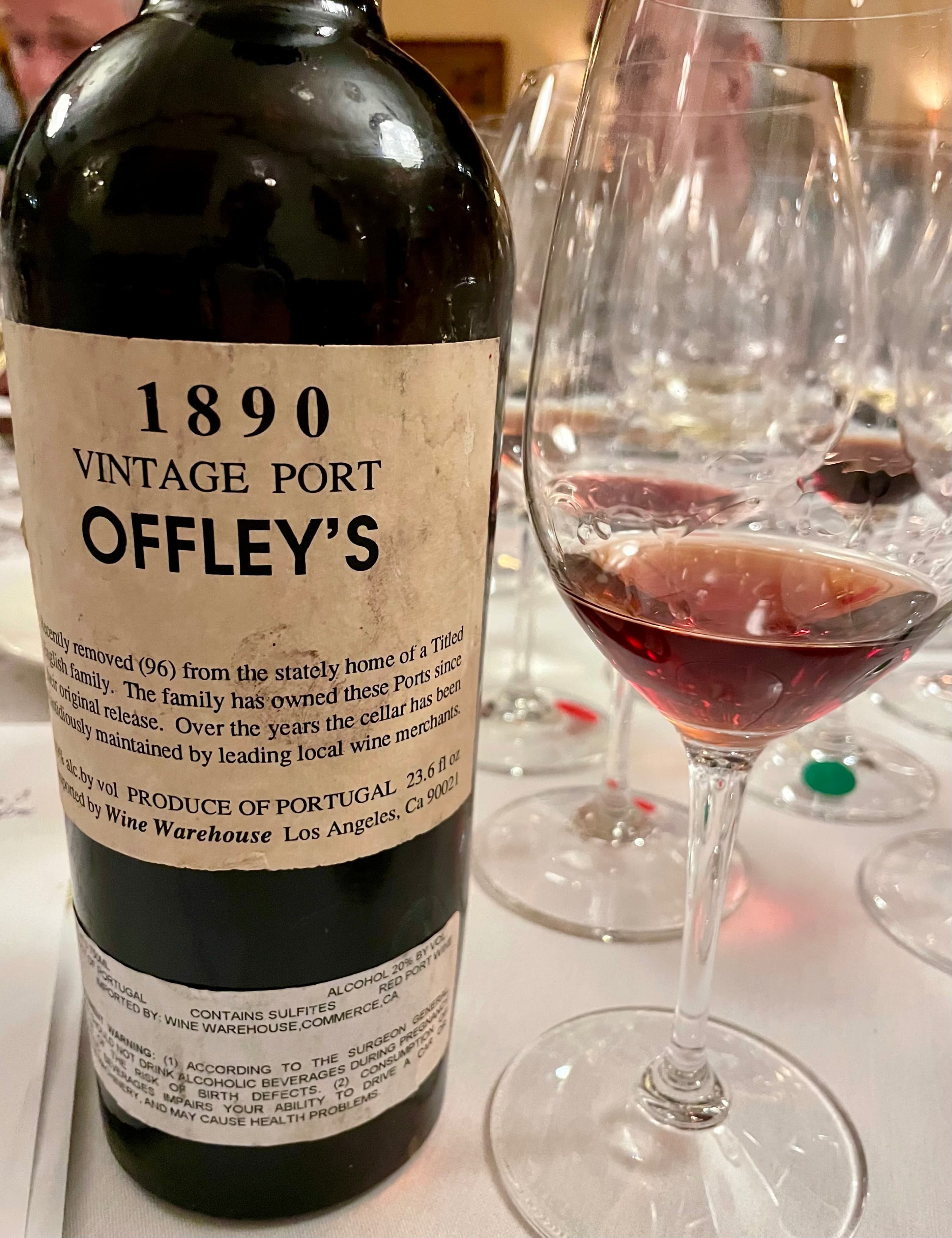 1890 OFFLEY’S VINTAGE PORT- blind; coming from a world renown Port collector who puts on epic once in a lifetime Port tastings annually, this was the fitting climax to a marvelous evening; I had no idea as to how old it was, but trusted it was over 100 as I aspire to be; it was simply amazing initially giving lovely honeyed and tar covered blueberry fruit that eventually gave way to blackberry and black currant; it had an oily, wondrous texture that added a tactile pleasing sensation to complete the sensorial treasures that capped it all for us on this evening.
