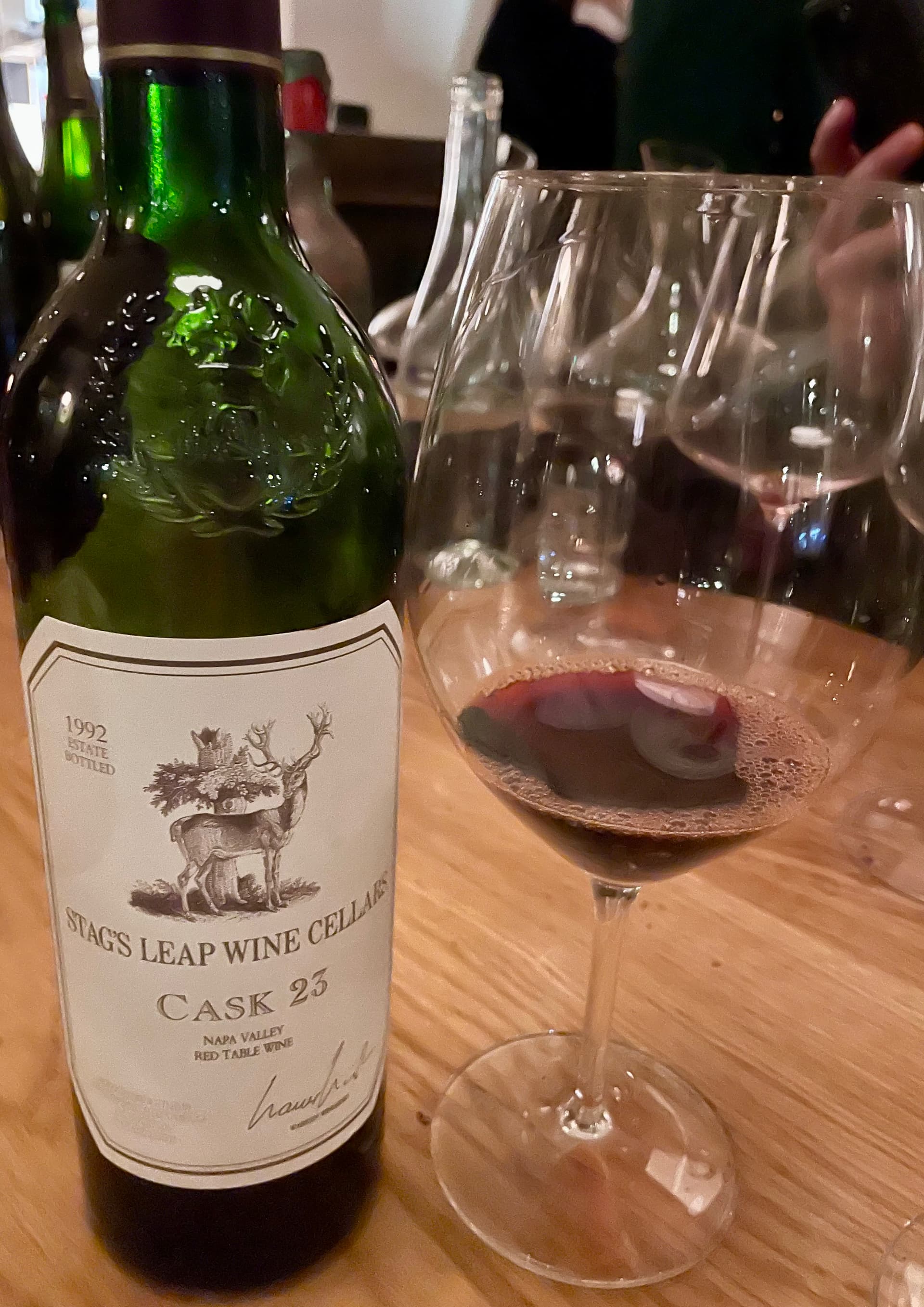 One asked me to bring an “older” Californian Cabernet and I gave him some choices and he selected 1992 Stag’s Leap Wine Cellars Cask 23. So, for the first time ever, I brought wine with me to Amsterdam.