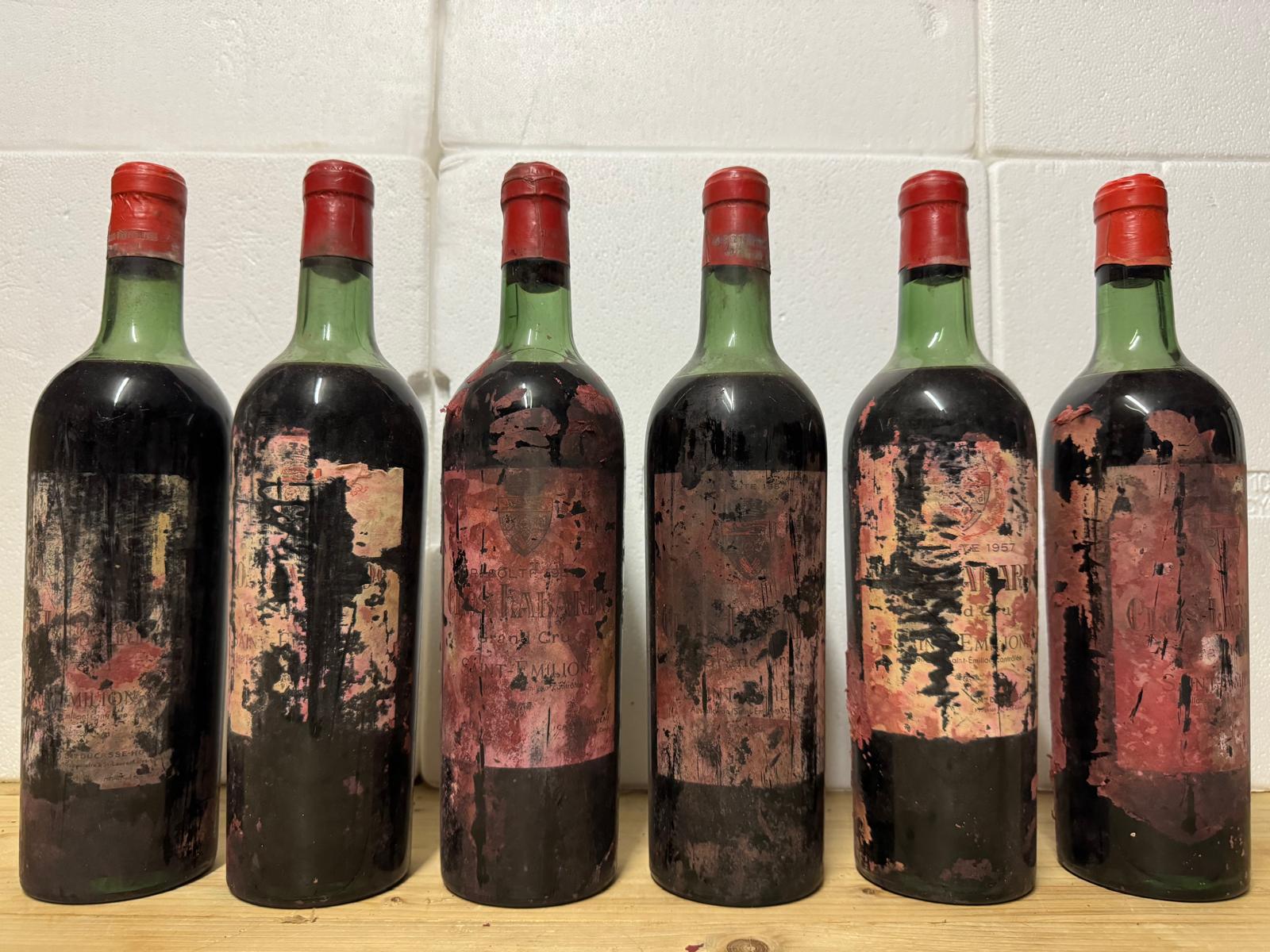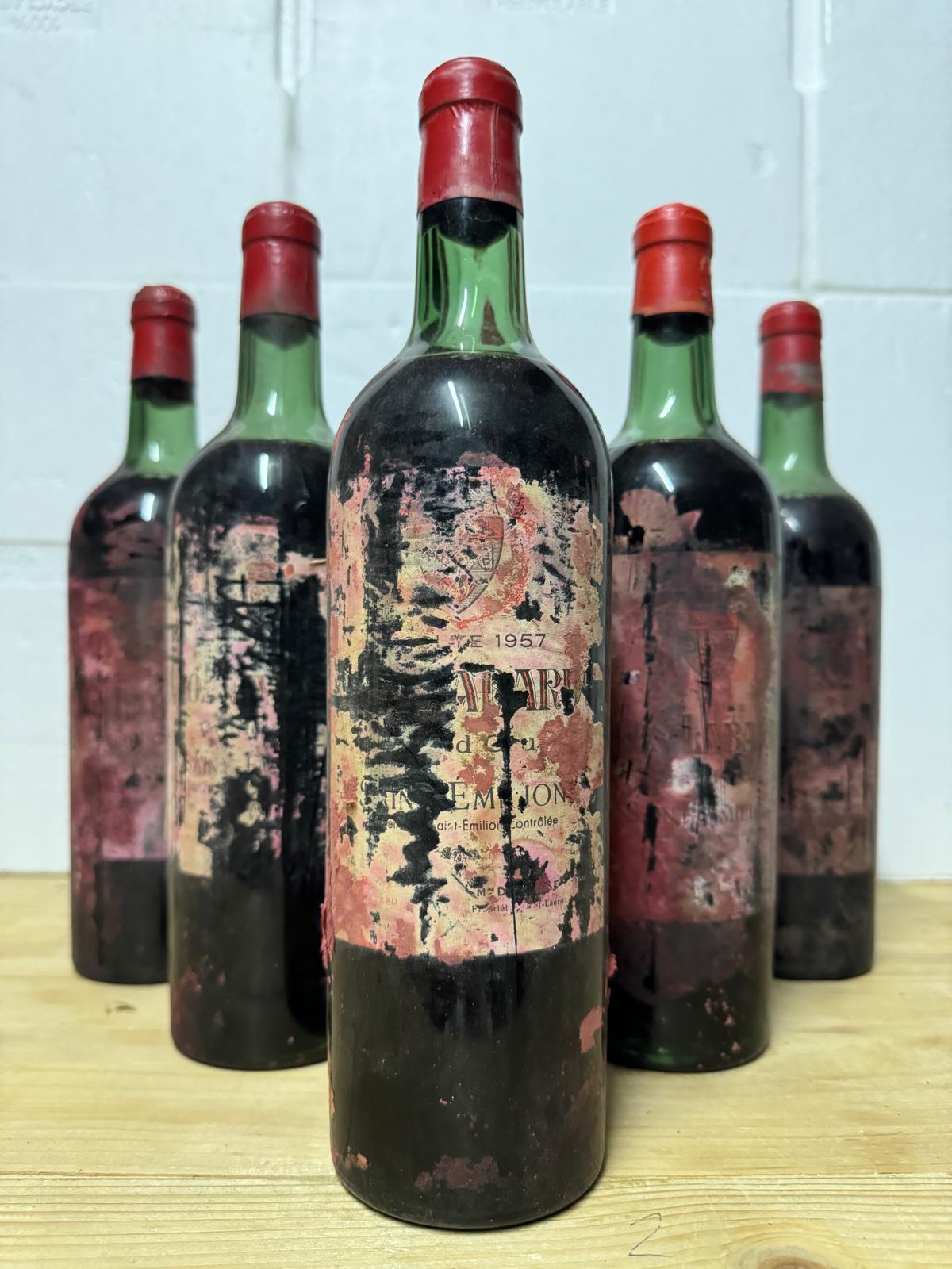 1957 CLOS LABARDE SAINT EMILION- this is a blend of mostly Merlot and since the vineyards are also planted tp Cabernet Franc and Cabernet Sauvignon, I’m assuming a small portion on one or both; the cork was removed via a Durand opener and it was seriously saturated throughout as was the label which was pretty much faded out; the color was transparent red; the nose offered some very approachable aromas of red fruit and the taste also had some metallic black currant; it was quite drinkable and a treat to sample while imagining where this came from; the one who bought it shared photos of this and other, more pristine bottles upon purchase.