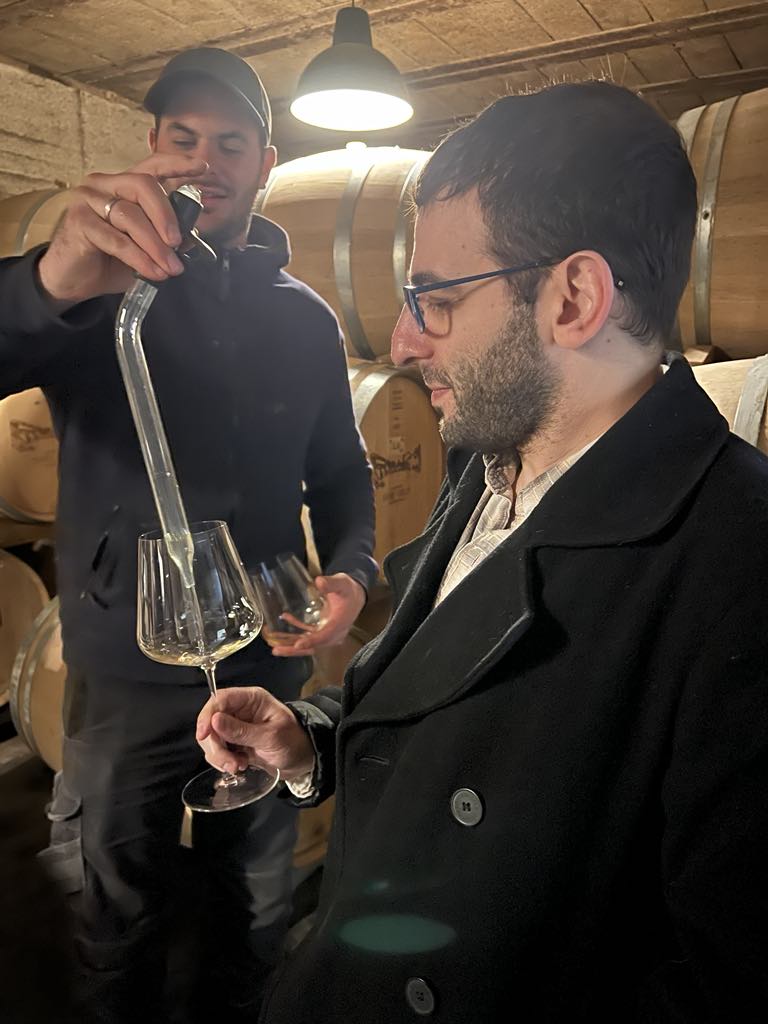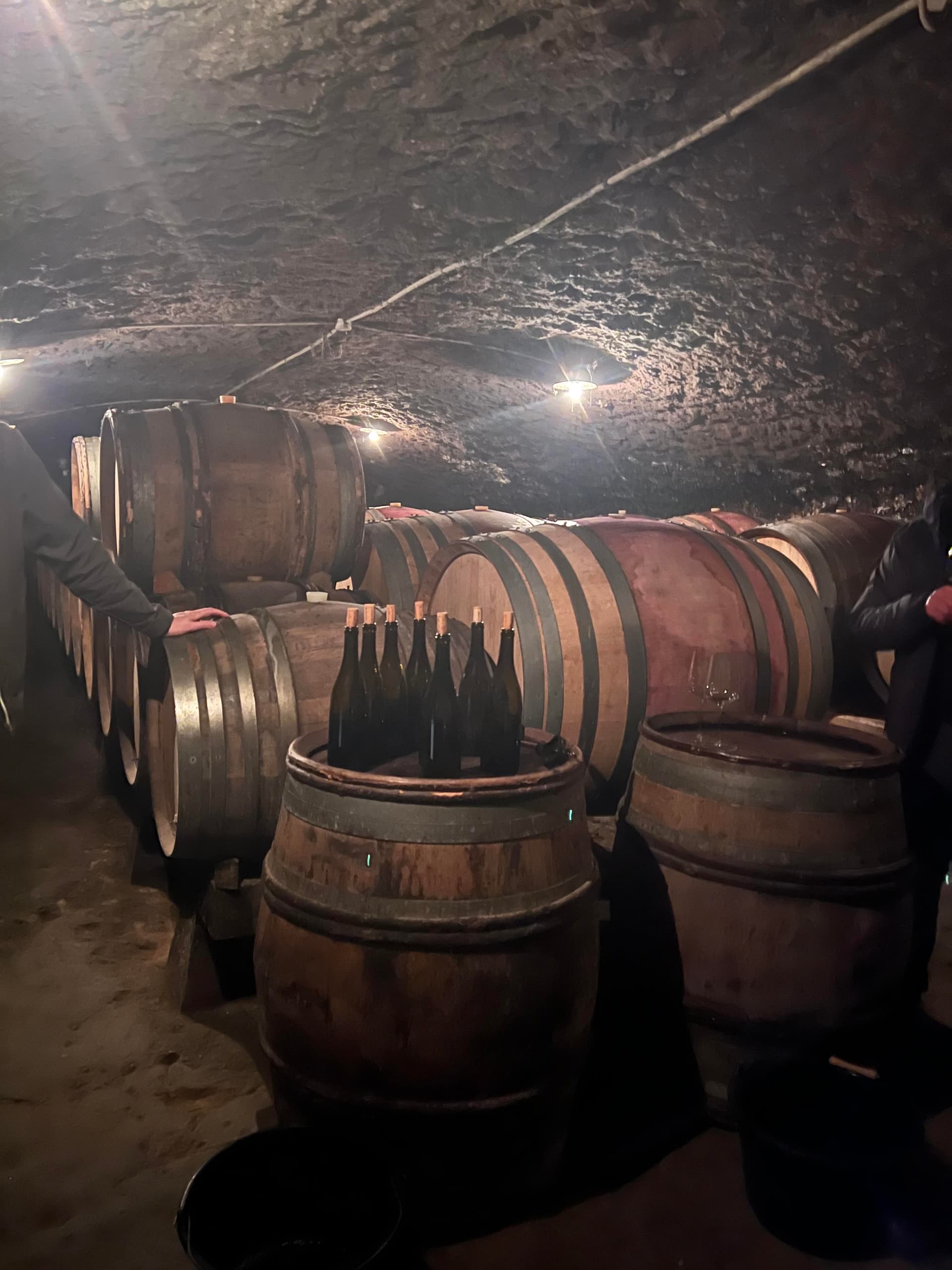 Adrien starts with us tasting maybe 4 or 5 or so vin clairs from 2023, which he said was a difficult vintage, but you couldn’t tell because these wines were great. He could’ve bottled some right then and there and I would’ve bought them. Electric acidity on most, and it’s wild to see how different the different sites show before blending and aging on lees, etc. The vin claires ranged from expressive and fruity to salty and reductive. He loves when his wines are reductive and that seems to be his ideal, but he doesn’t really “do” anything to “make” them reductive, it just depends on the fruit/site and what happens naturally in the cellar.