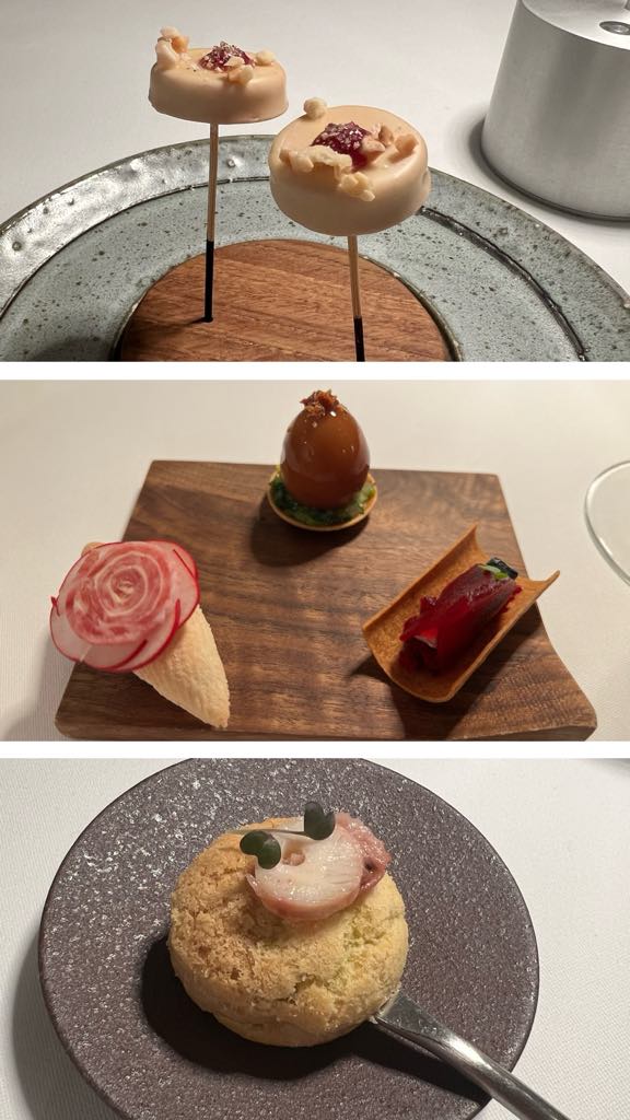 We hit up a few wine shops, bakeries, etc. before dinner at La Jardin Les Crayeres. Really nice, relaxing atmosphere, top-notch service (included the somm), and great food, all for a very reasonable price. We enjoyed a bottle of NV Huré Frères Champagne L’Insouciance (base 2020) for 100 euro I think off the great wine list. Great fresh strawberry notes and great balance. Simple, but very enjoyable and something I’ll purchase again. I very highly recommend this restaurant.