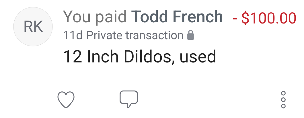 True, I mean this is a bit of an ongoing joke from some time past but this is how I send Todd money…