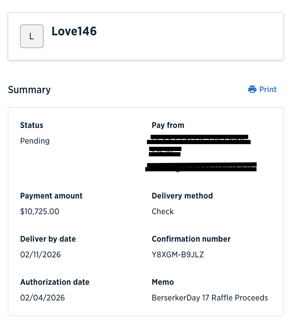Just wanted to share that payment has been sent to Love146: