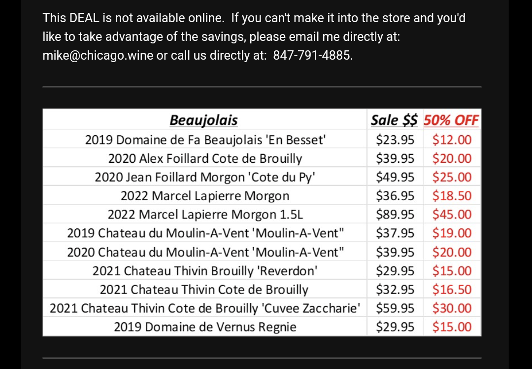Chicagoland folks. Beaujolais blowout Chicago.Wine in Glenview. Same store that had the $11 Volpaia :