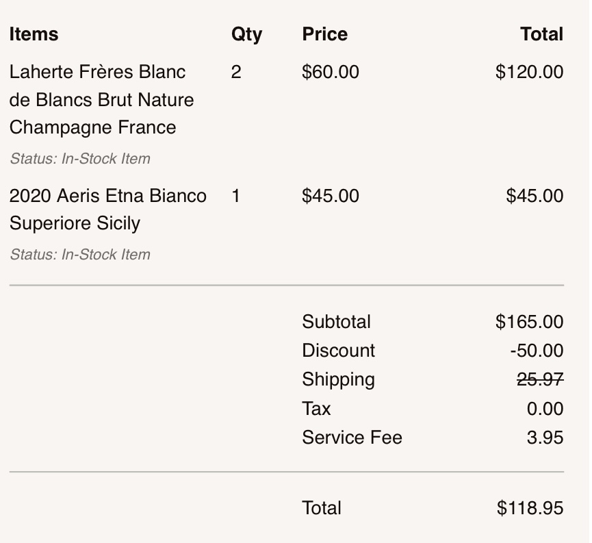 I couldn’t resist. I used an Amex with the $30 off $100 offer, so my net will be $88.95 delivered for these. The Laherte bottling has a lot of fans, and the Aeris Etna Bianco was tasted by @TomHill not long ago with some positive comments