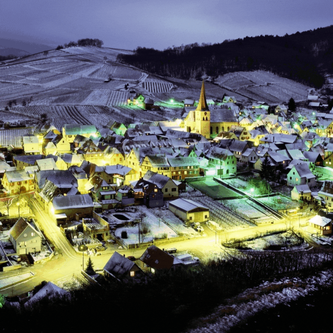 Located between the river Rhine and the Vosges mountains, and at the Swiss and German borders, Alsace offers a diverse landscape of plains, forests, valleys, peaks and of course, vineyards. In the shelter of the Vosges mountains, the Alsace vineyards benefit from a dry and sunny micro-climate, especially in summer and autumn, which is perfect for cultivating vines. The patchwork of different soils and reliefs makes the terroir all important, and each winemaker chooses their vines to best express the potential of each plot.