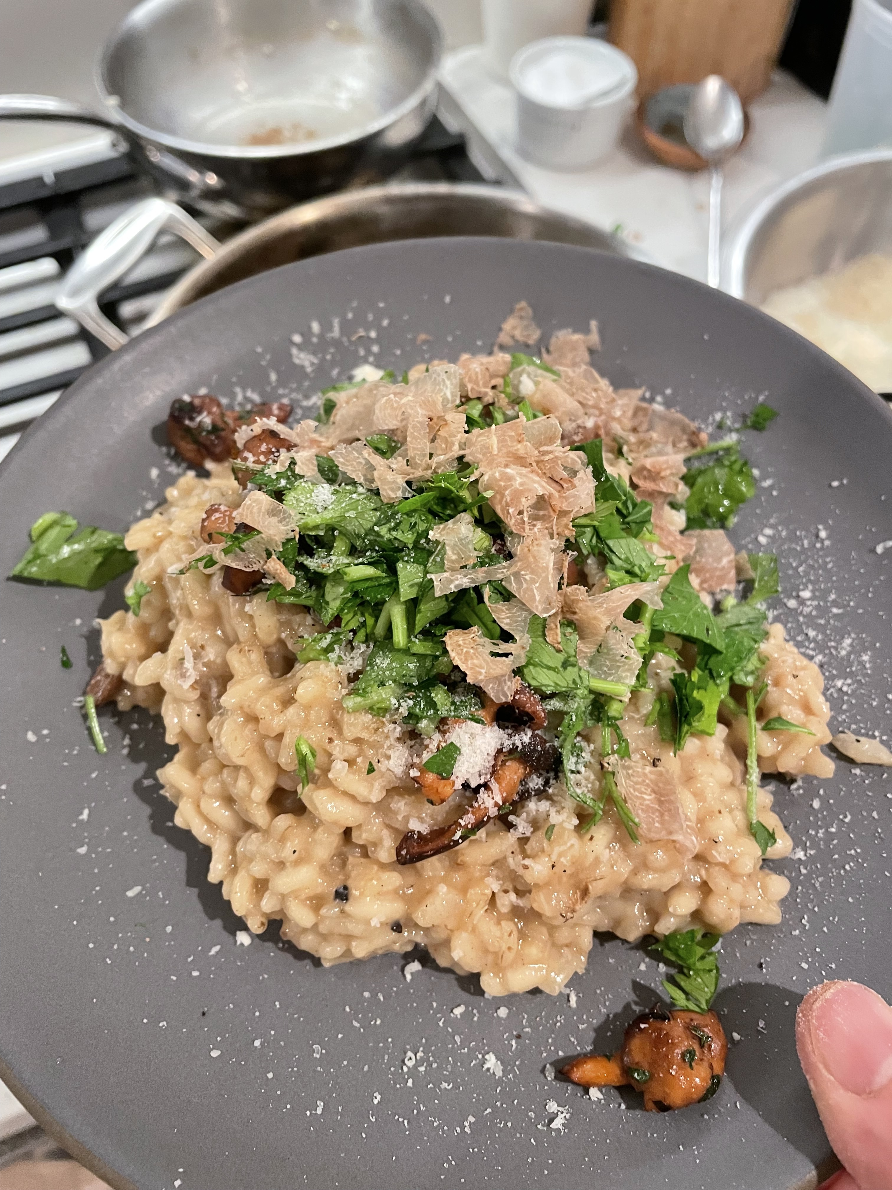 - A cauldron of mushroom risotto