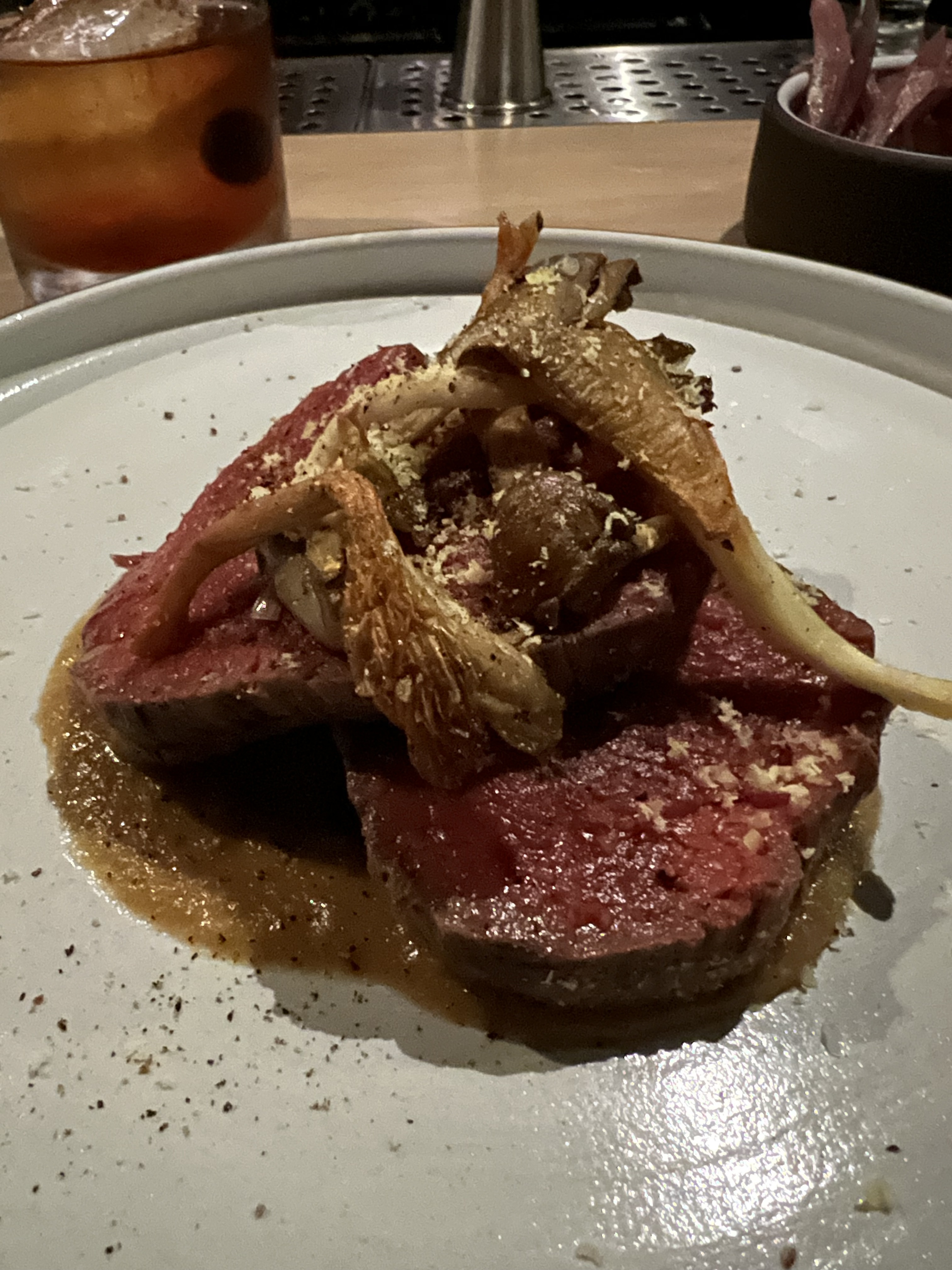 Perfectly cooked Filet with Crispy Mushrooms at PDHF