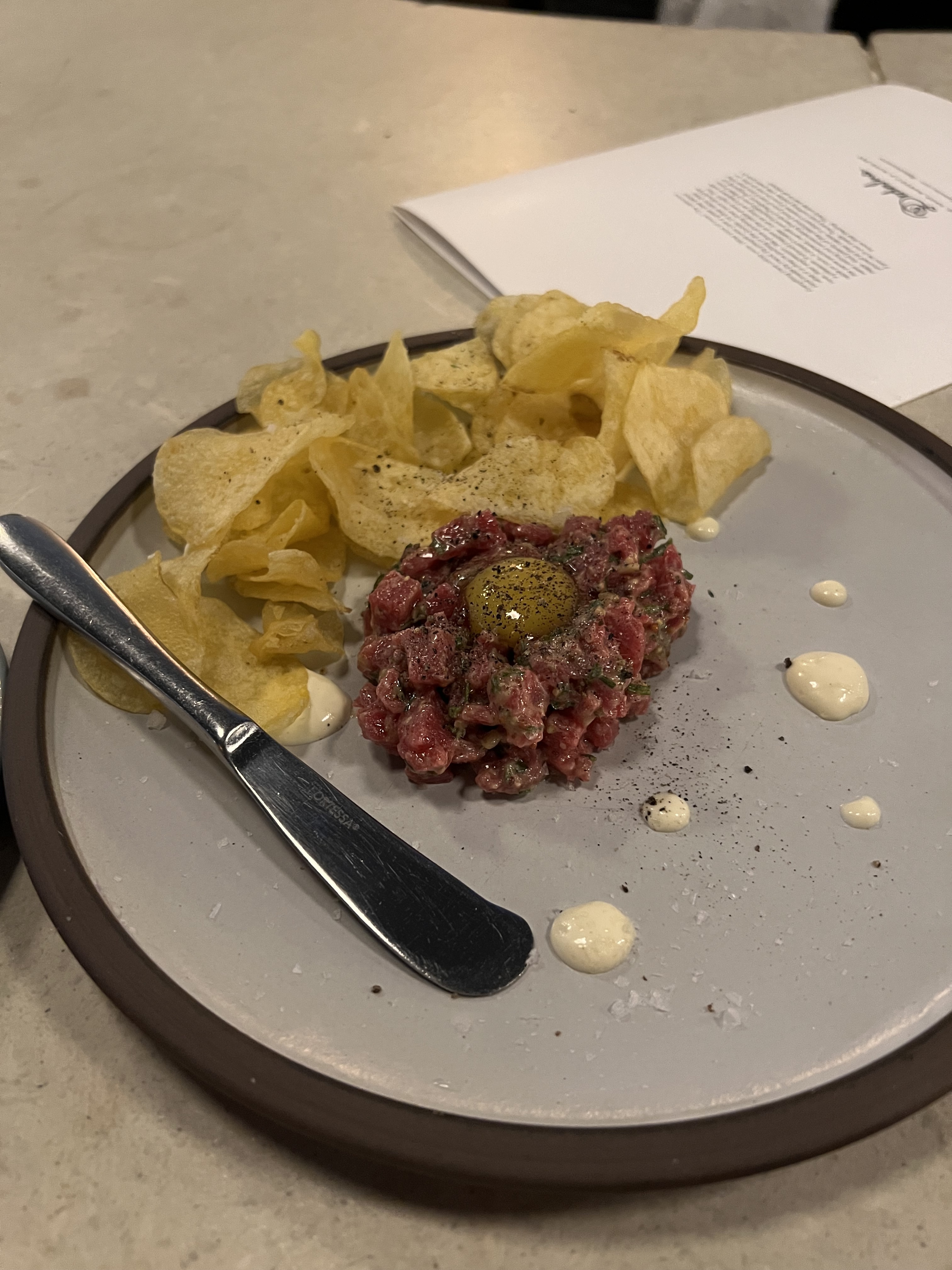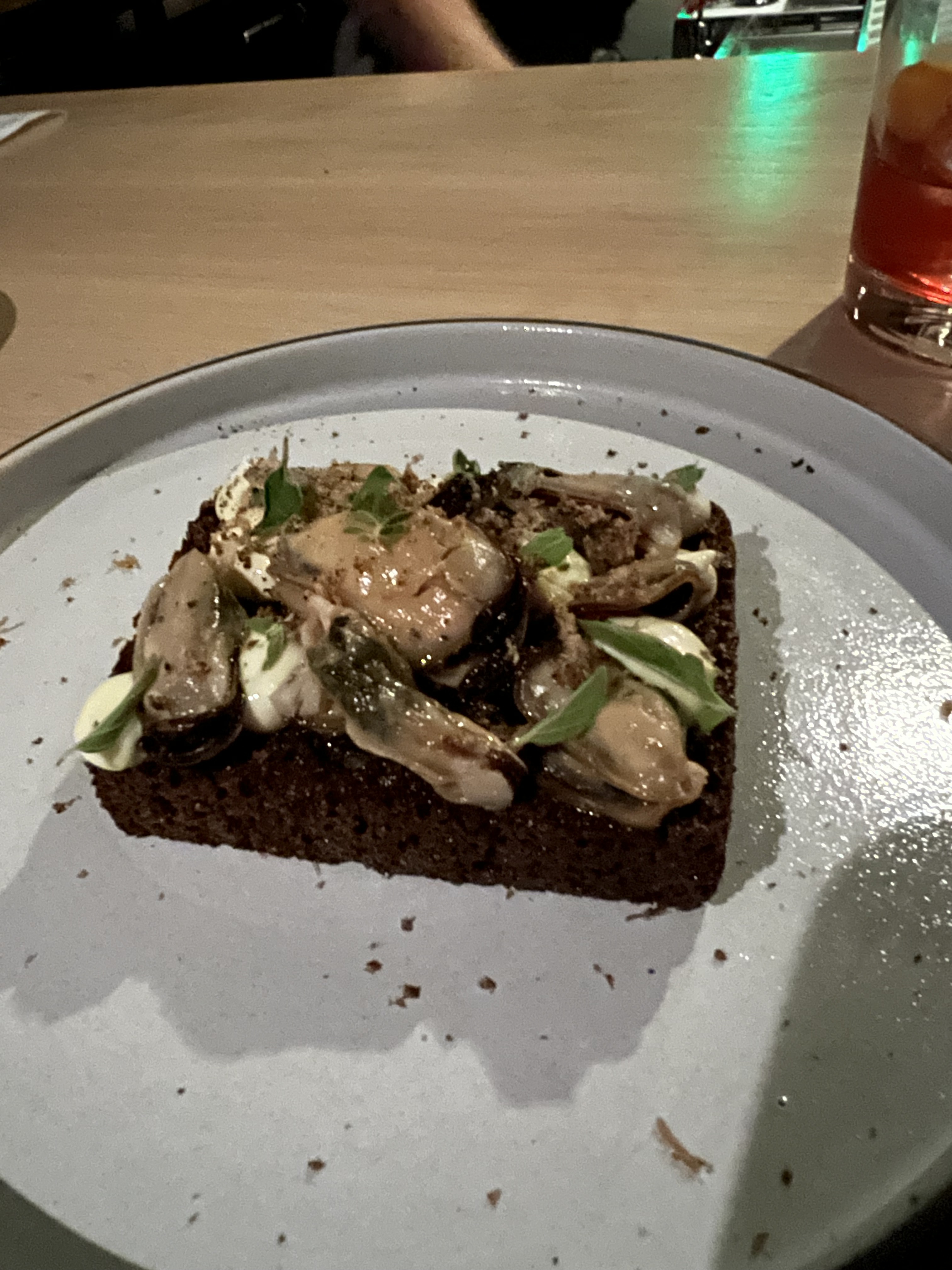 Second weekend in a row in Burlington to ski. Last night’s dinner was at Paradiso Hi-Fi. The previous week I just has a cocktail there. Had four dishes (Most of the dishes are tapas sized). Started with the Marinated Mussel Toast which was excellent…I need to do a much simpler version at home with some good bread and tinned mussels escabeche. Their version was in the Scandinavian vein. Second dish was the Smoked Carrot Dumplings. It’s early in the year, but this is the running for top dish of the year for me. I could have eaten three plates of this. Followed that with the Cured Trout. It was served skin on and the skin was lightly torched. The part that sounded odd to me turned out to be really tasty…the fish was served with shaved frozen buttermilk. The main was the Rabbit Roulade over Farro. I had an excellent cocktail called Under Pressure which was a riff on a Negroni. This was my second Friday in a row sitting in the same corner bar seat and the staff instantly recognized me when I sat down yesterday. The bartender even remembered what I had to drink last week. @Robert_Dentice I wonder if you will agree with me…Paradiso Hi-Fi gave me Four Horsemen vibes but with cocktails. Amazing food that exceeds expectations for the low key environment, great music and acoustics, friendly, hipster service.