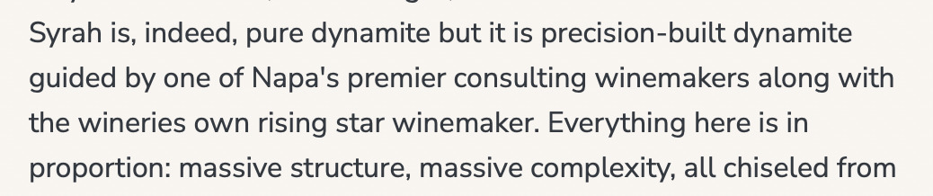 I don’t really think it matters. If I have learned one thing from Cam’s write-ups, it’s that if he shows consistency in his verbiage (vineyard that cannot be named), that means it is usually from the same source!