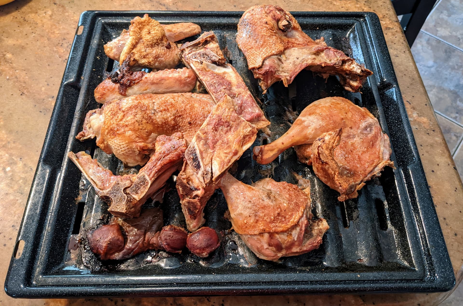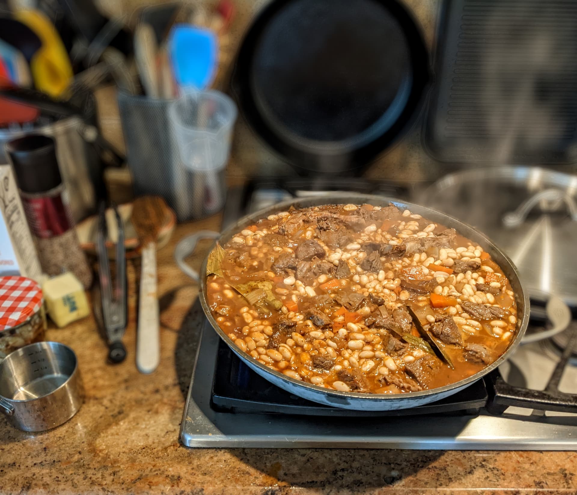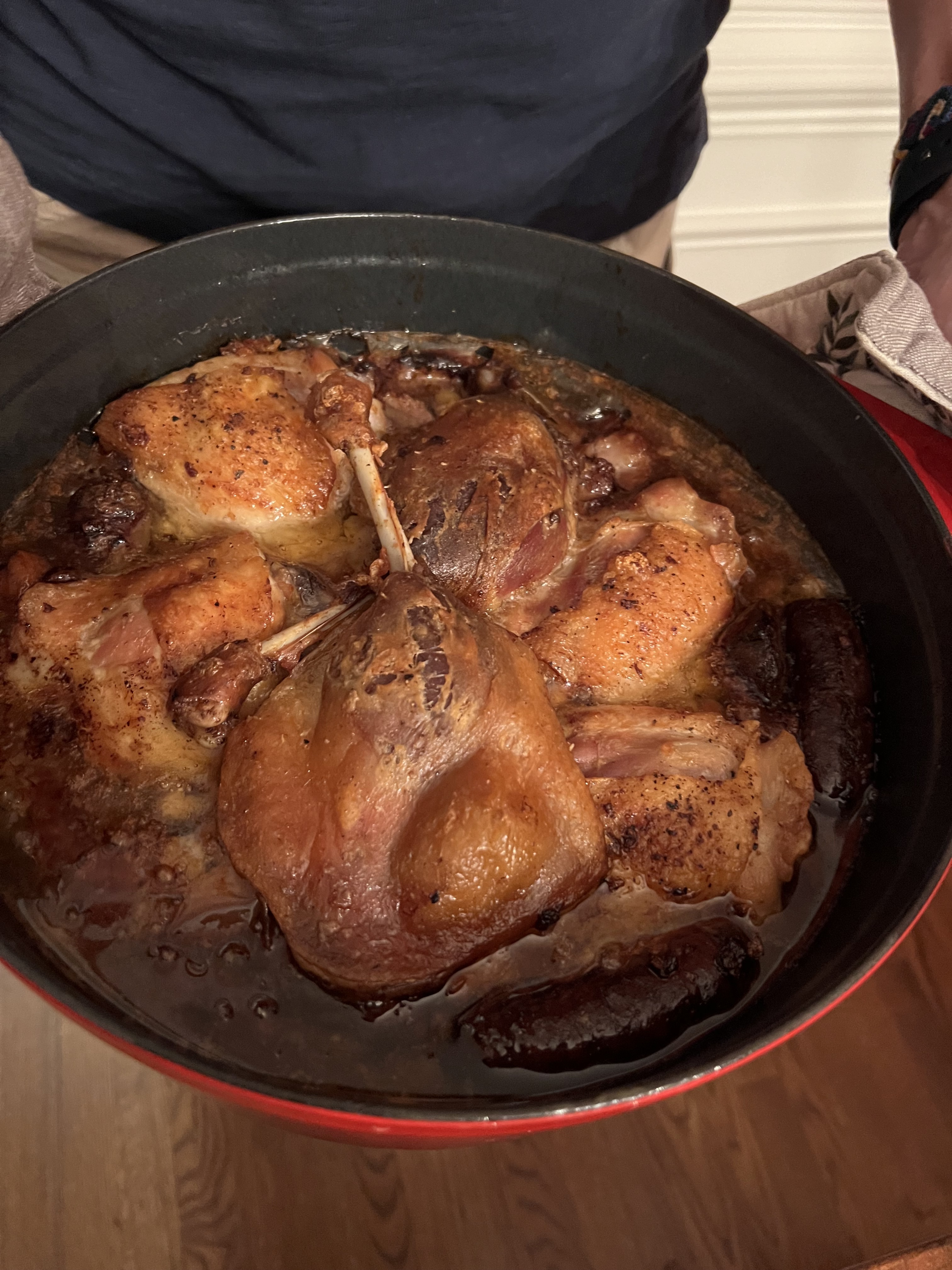 I made Cassoulet yesterday as well. Turned out great. Used chicken confited in duck fat, two kinds of sausages, pork belly that I cured at home, and Rancho Gordo’s cassoulet beans. The chicken was excellent but in the future I doubt I’ll go through the trouble, and instead will just use fresh chicken or buy duck confit.
