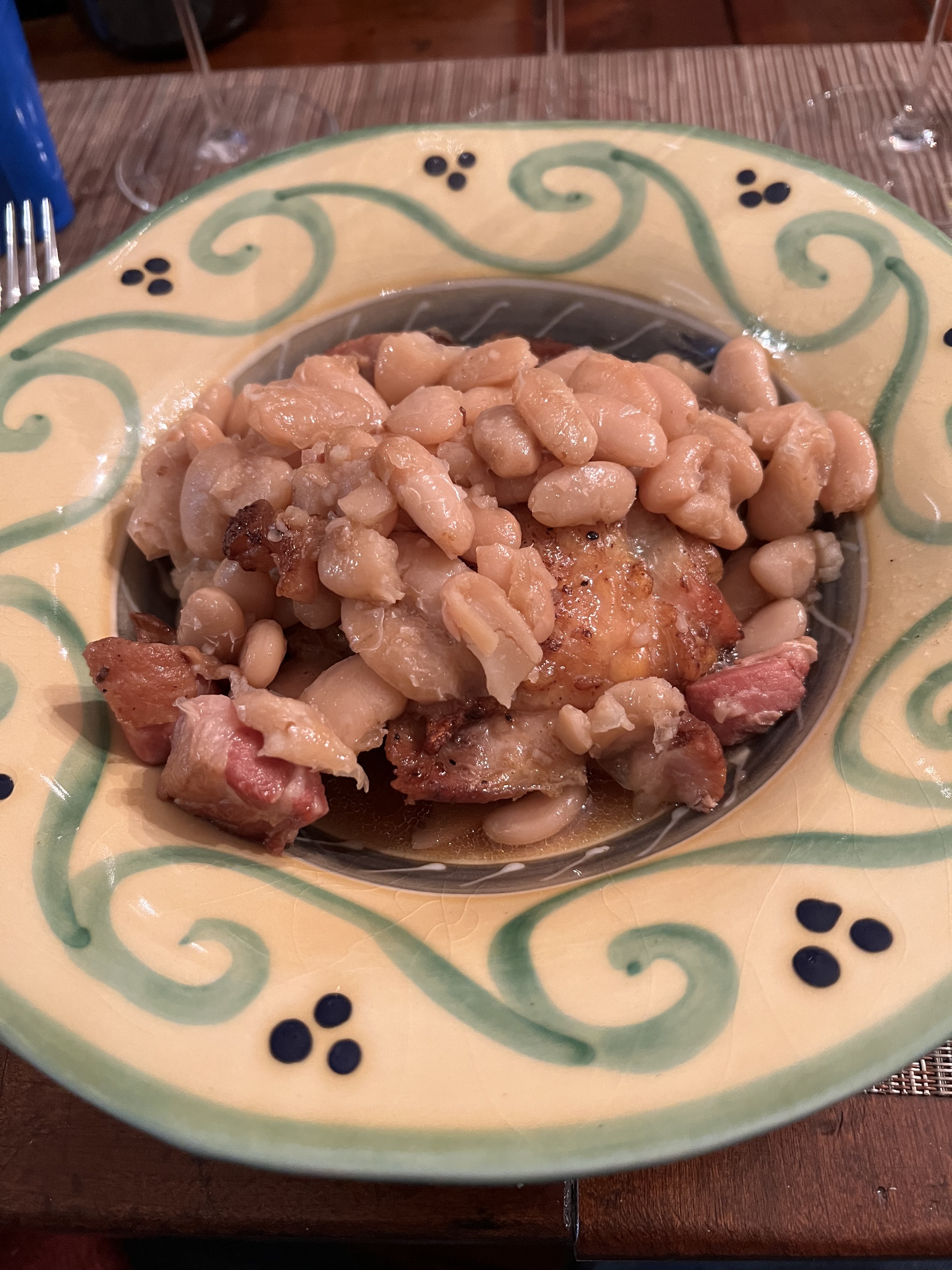 I make an all-poultry “quick” cassoulet that is fantastic. Smoked turkey leg, uncooked Italian or Andouille chicken sausage and my “quick” duck legs confit. The quick cassoulet is done in the slow cooker 8 hours. The duck legs get a rub overnight and cooked in the oven 3 hours. And I always use the Rancho Gordo tarbais beans.