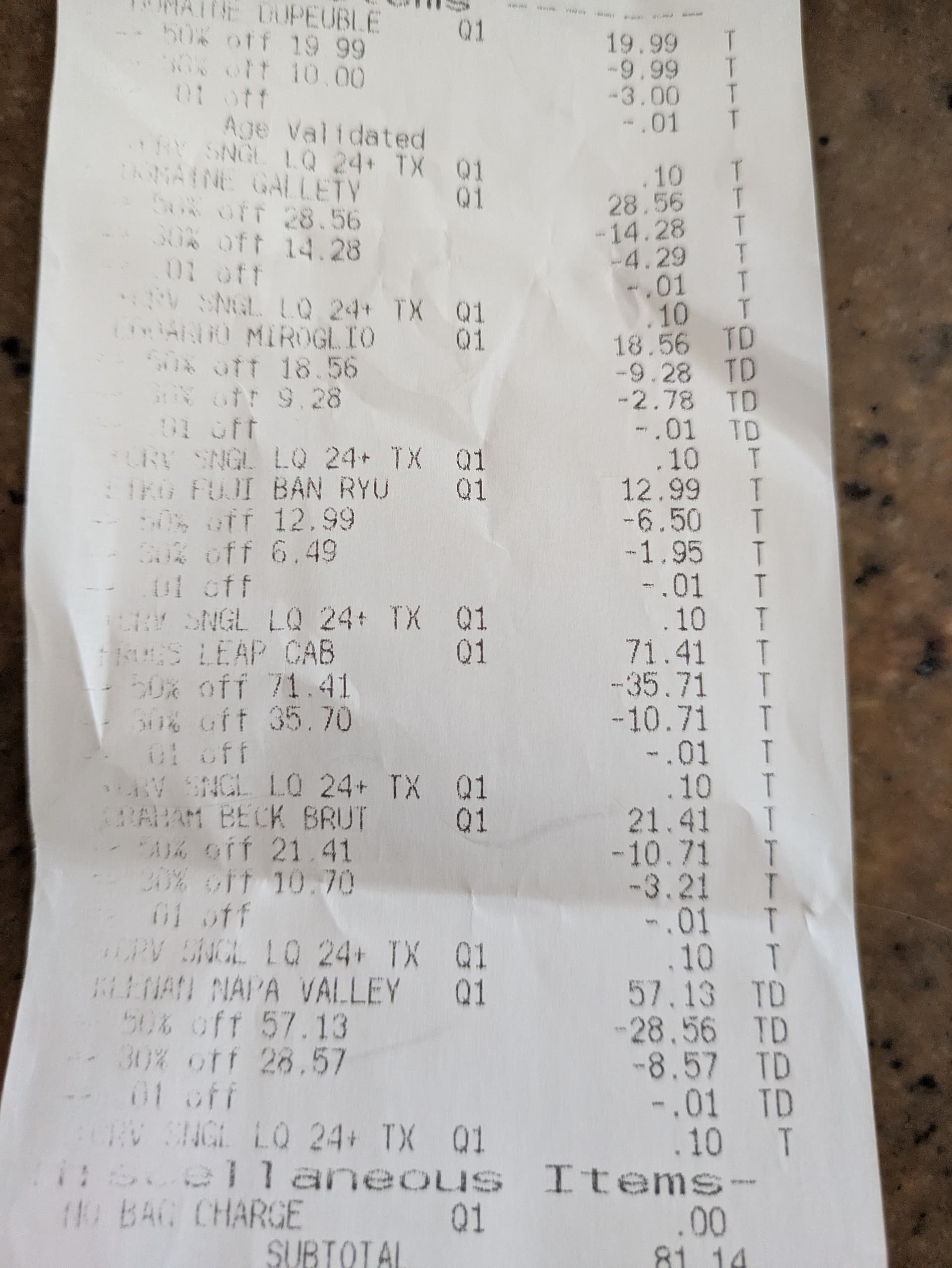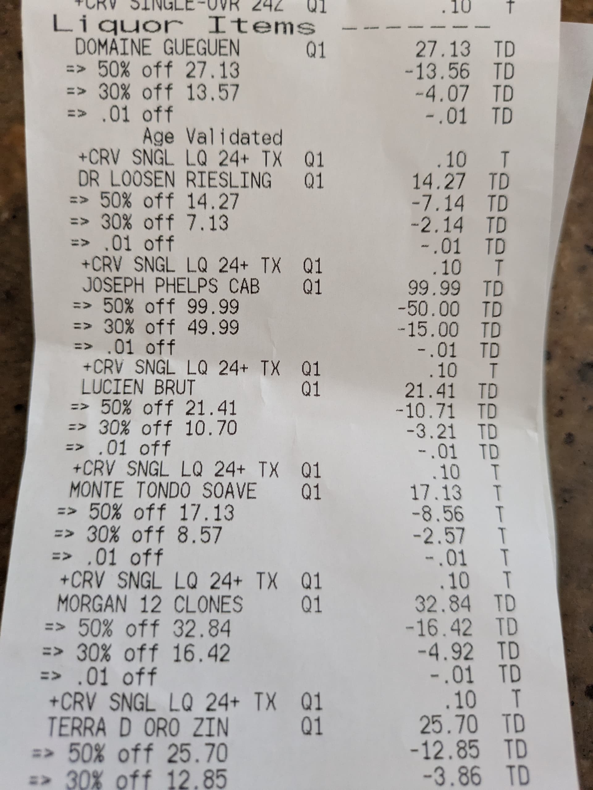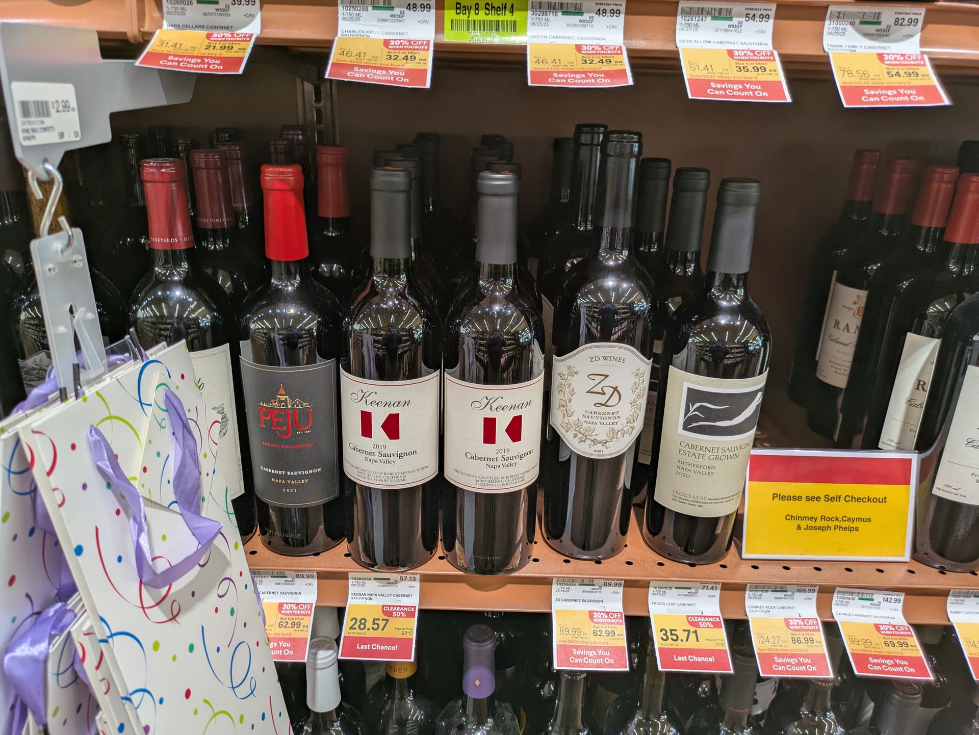 This is at a Western regional chain (100+ stores) that operates under Raleys / Bel-Air / Nob Hill banners. I was in multiple locations again today, and there seem to be plenty left. Sale prices don’t seem to be incenting local wine packrats at much now?