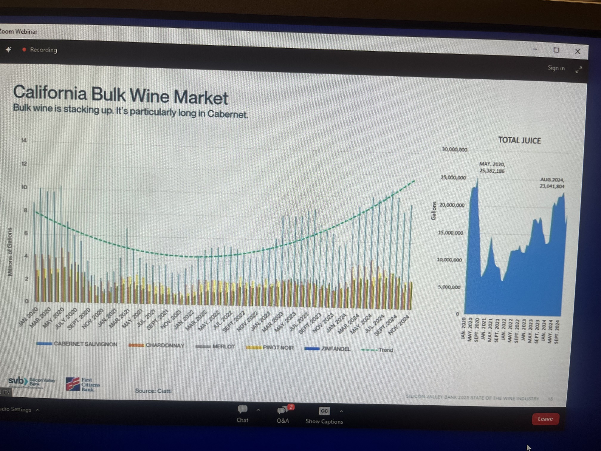 From the 2025 SVB State of the US Wine Industry report. CA bulk wine market back up to pre-COVID levels.