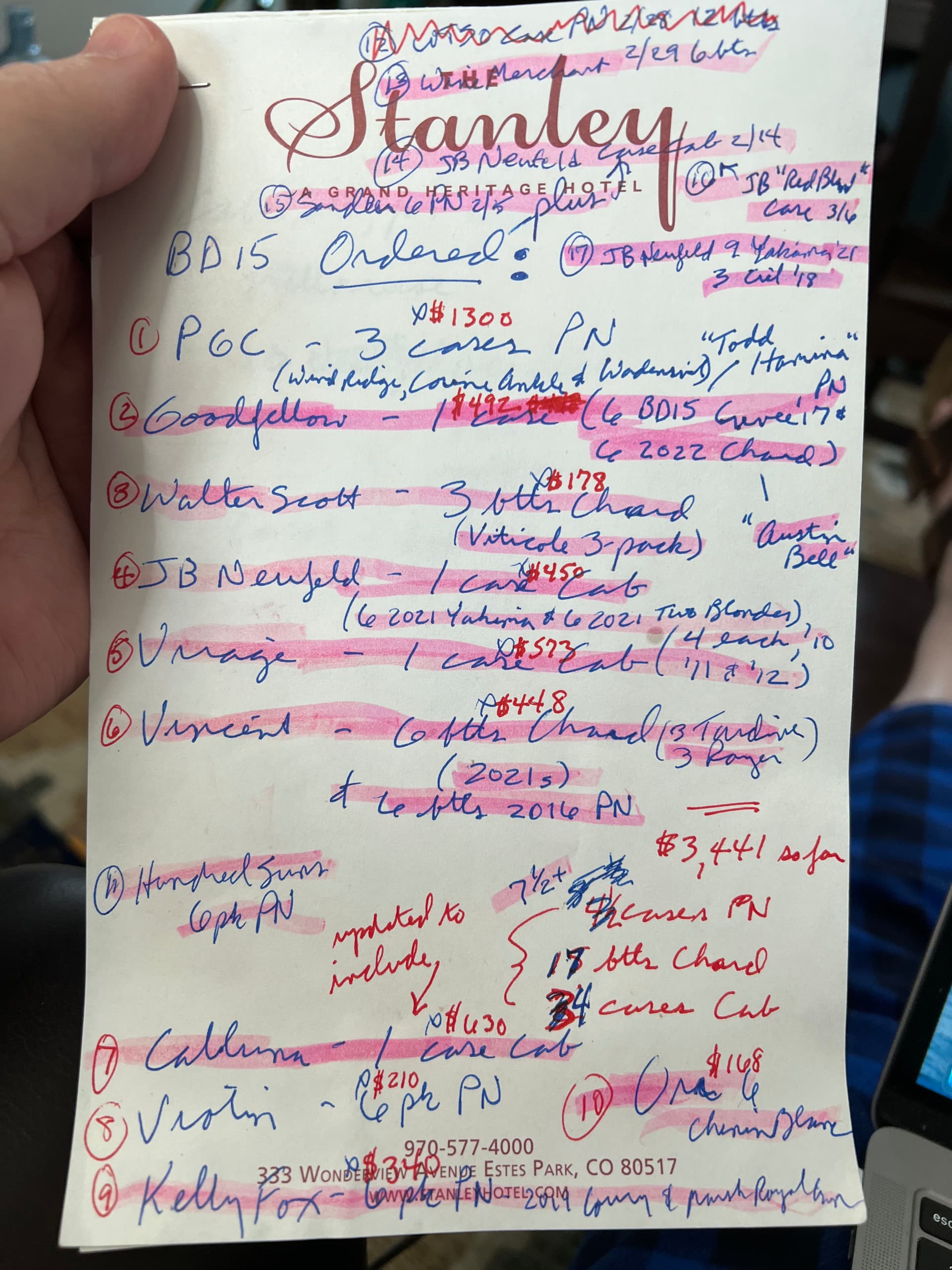 I have a box in the cellar that I keep invoices in. That way if the house burns down the invoices will burn with the wine and I won’t be able to claim it on insurance.