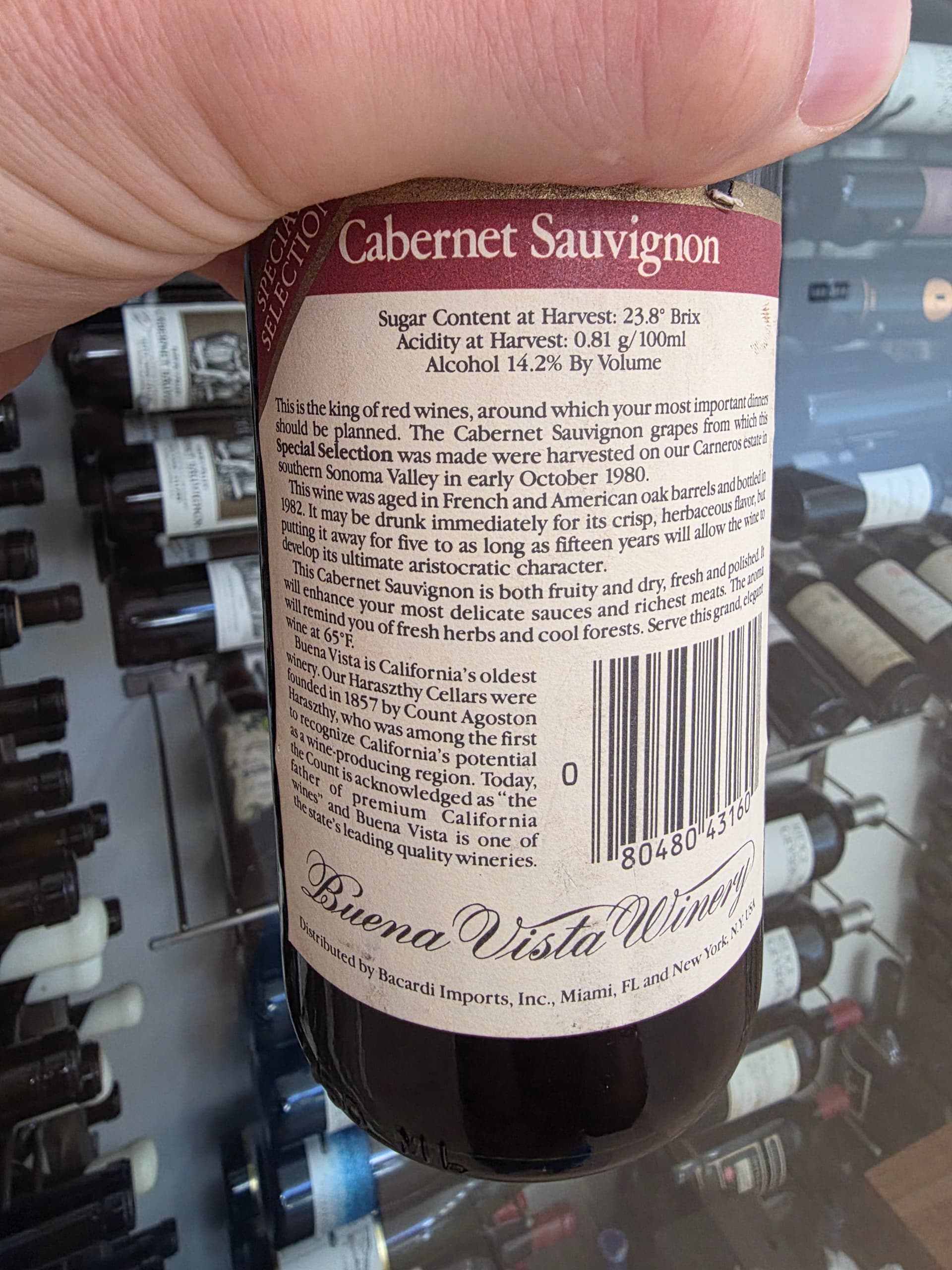 So this was surprising! I was in the mood for some aged CA goodness (I know…weird, right? ) so I originally popped a 1980 Buena Vista, Special Selection Cab.