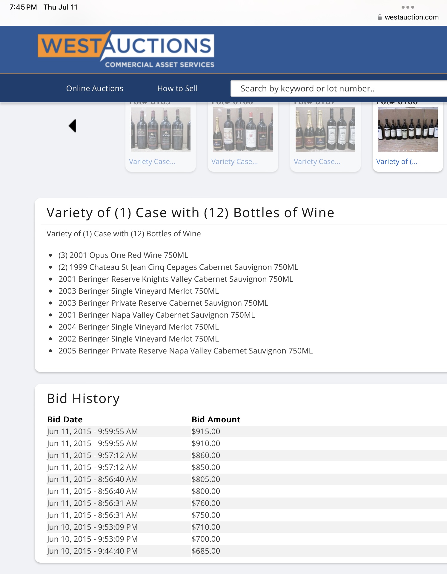 I have no clue, but retail would be around $500/case. I think people are being wooed by the $5 minimum bid. If you look at past auctions on that site individual bottles of fairly pedestrian wines sold for $10-15ea. Cases anywhere from $50-$150