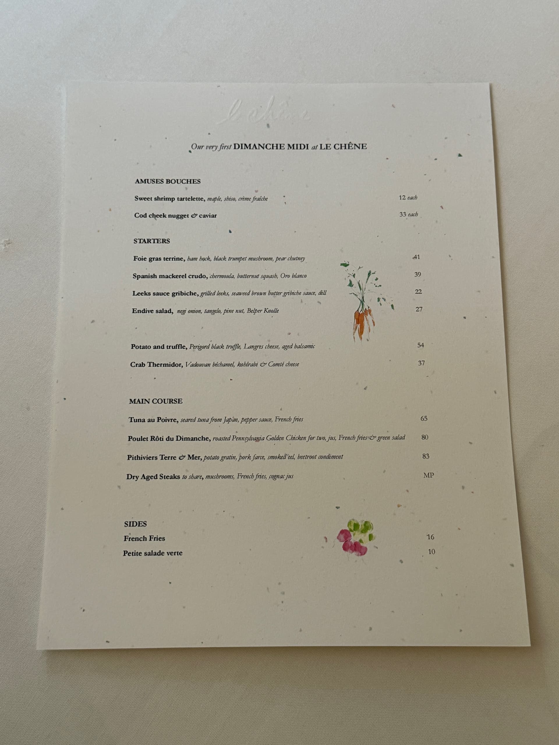 Sunday lunch at Le Chéne was absolutely wonderful. Perfect lunch menu that featured an outstanding Chicken. The wine list is fantastic. You can find lots of wine for ~$100 or if you want to order high-end the wines have very reasonable markups. It is a great light filled room that overlooks Carmine street and highlights a large Basquiat piece. The playlist works well for me. Can’t do much better (other than 4H) for a long leisurely Sunday lunch in a snowy NYC. We had the Keller and placed it next to their Chardonnay lineup (and a beautiful 21 Foillard Cote du Py)! Sadly we did not have 90 Coche CC. The Keller Chard was stunning!!