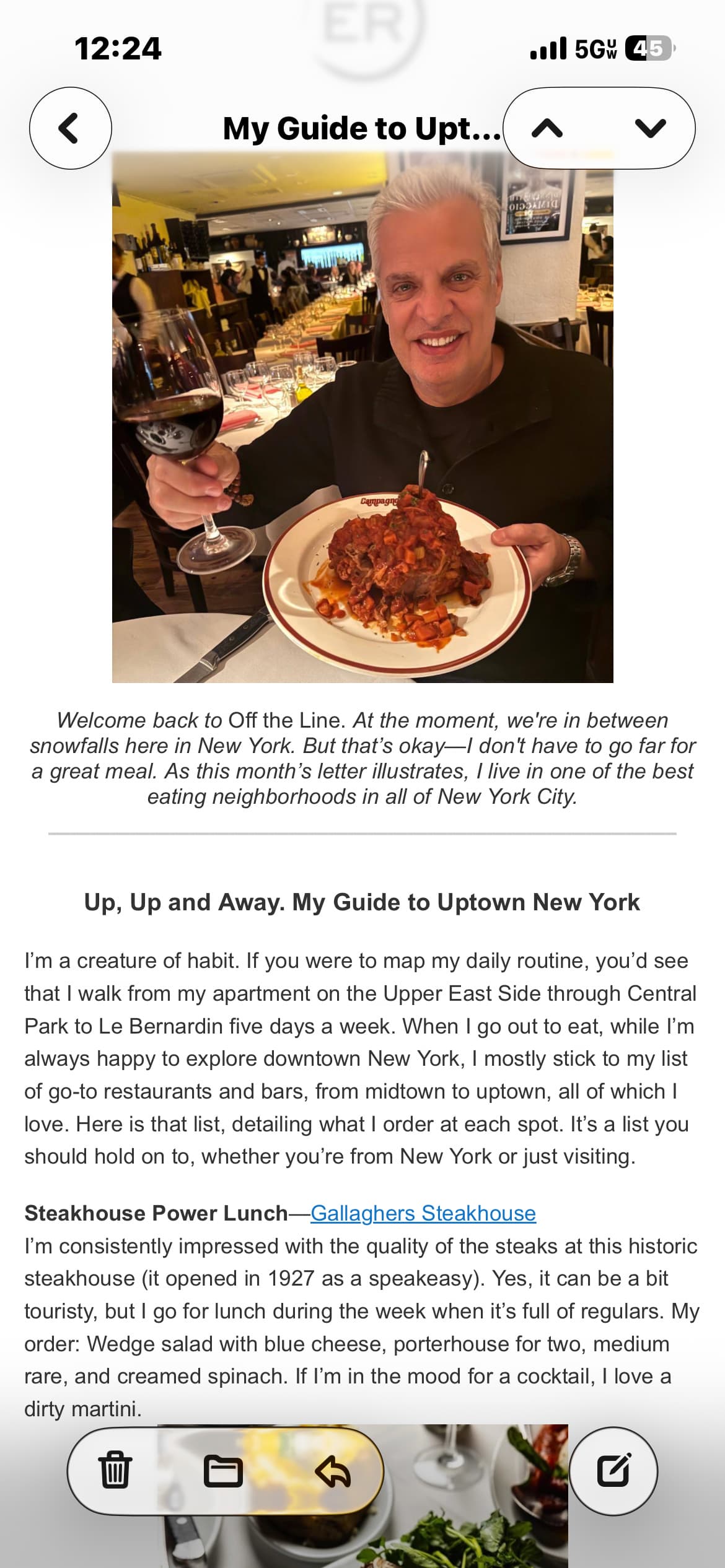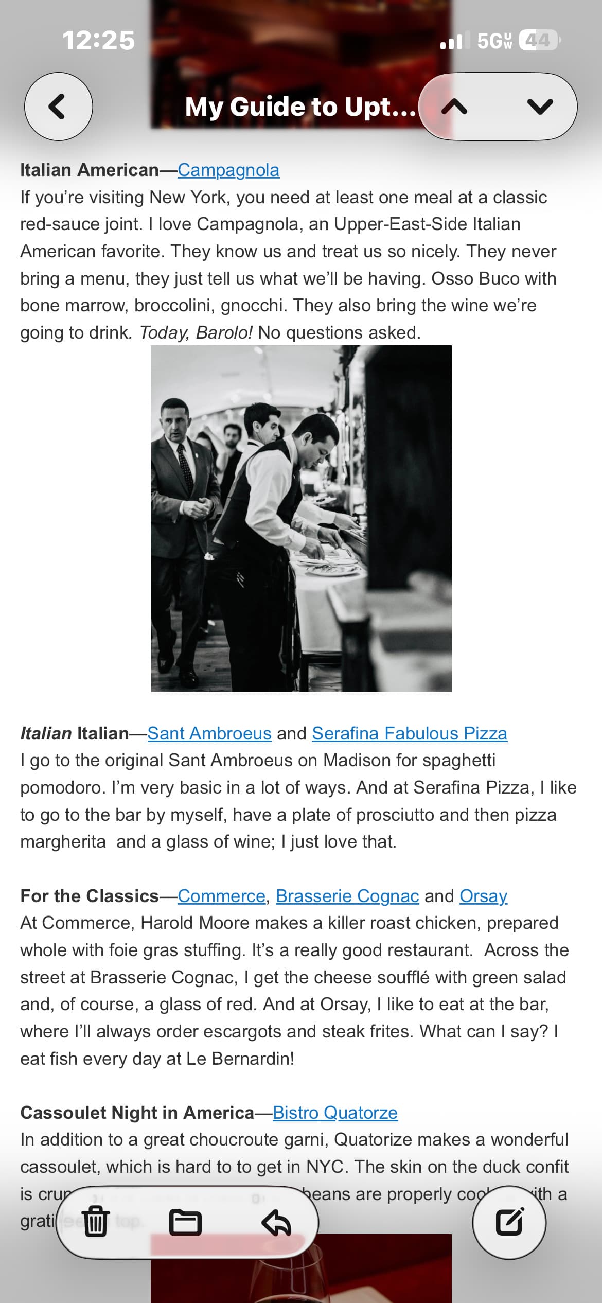 Anybody had any thoughts of Ripert’s post about his favorites from Midtown to Uptown? I can’t find a link to a webpage as it’s an email sub.