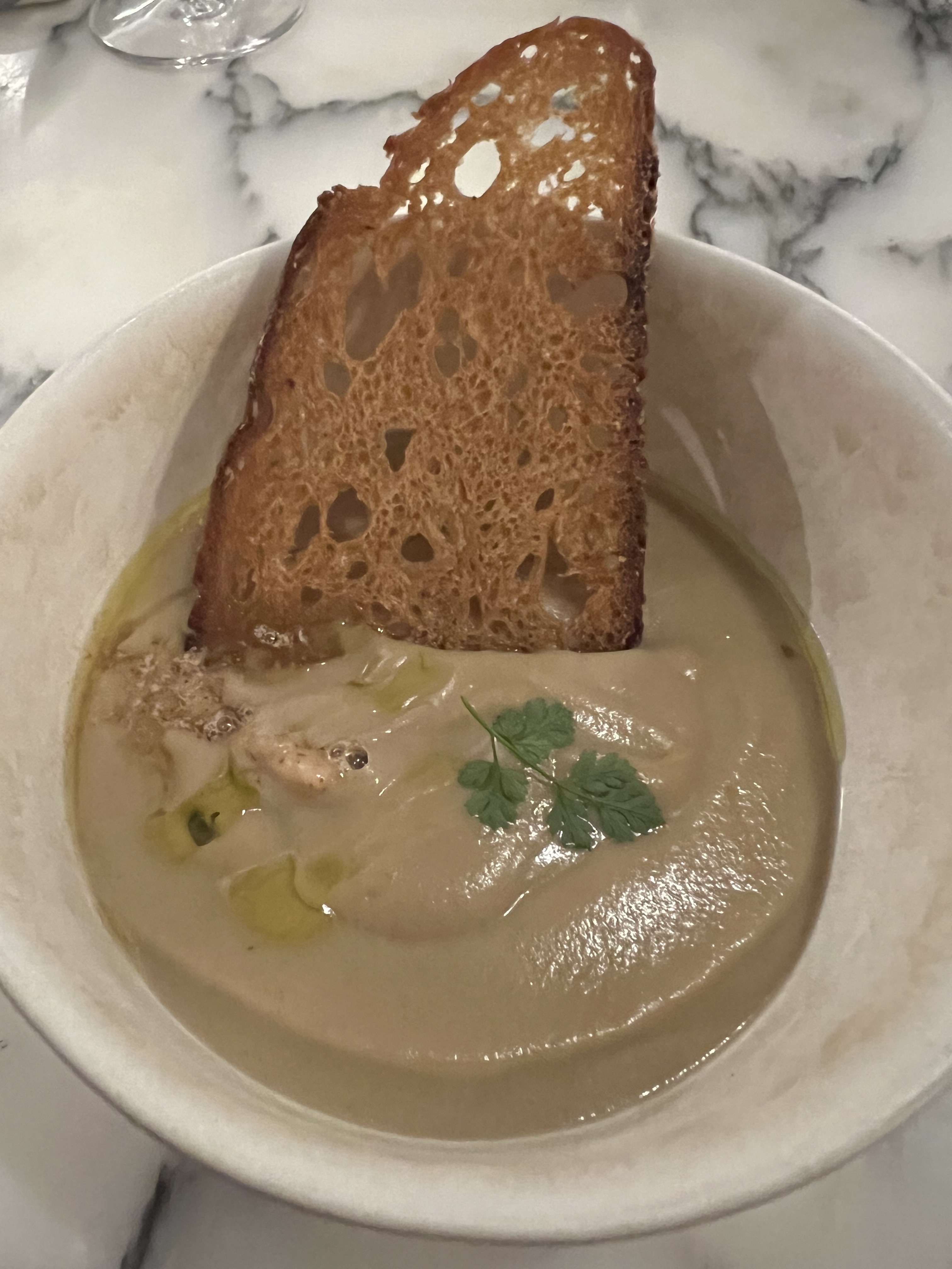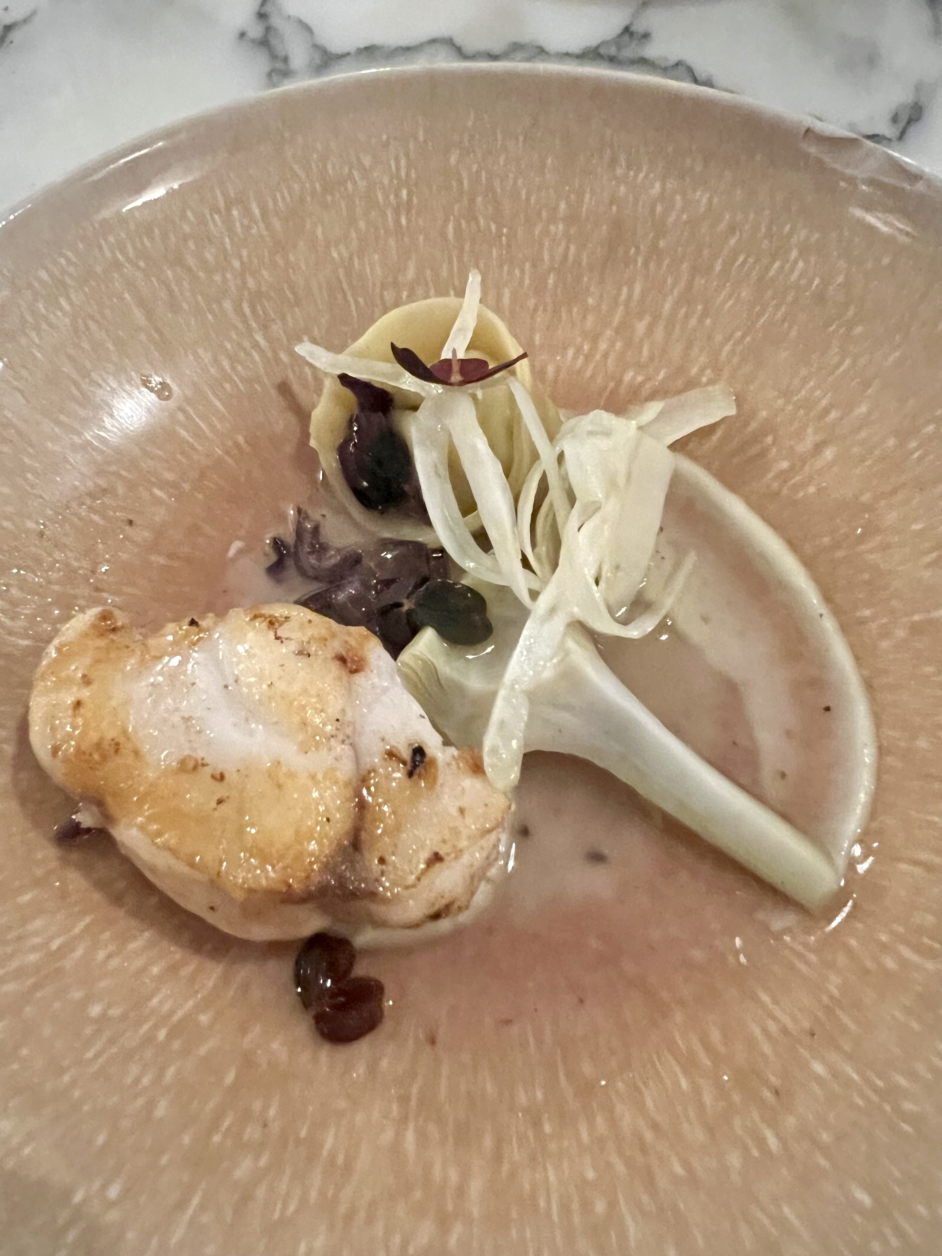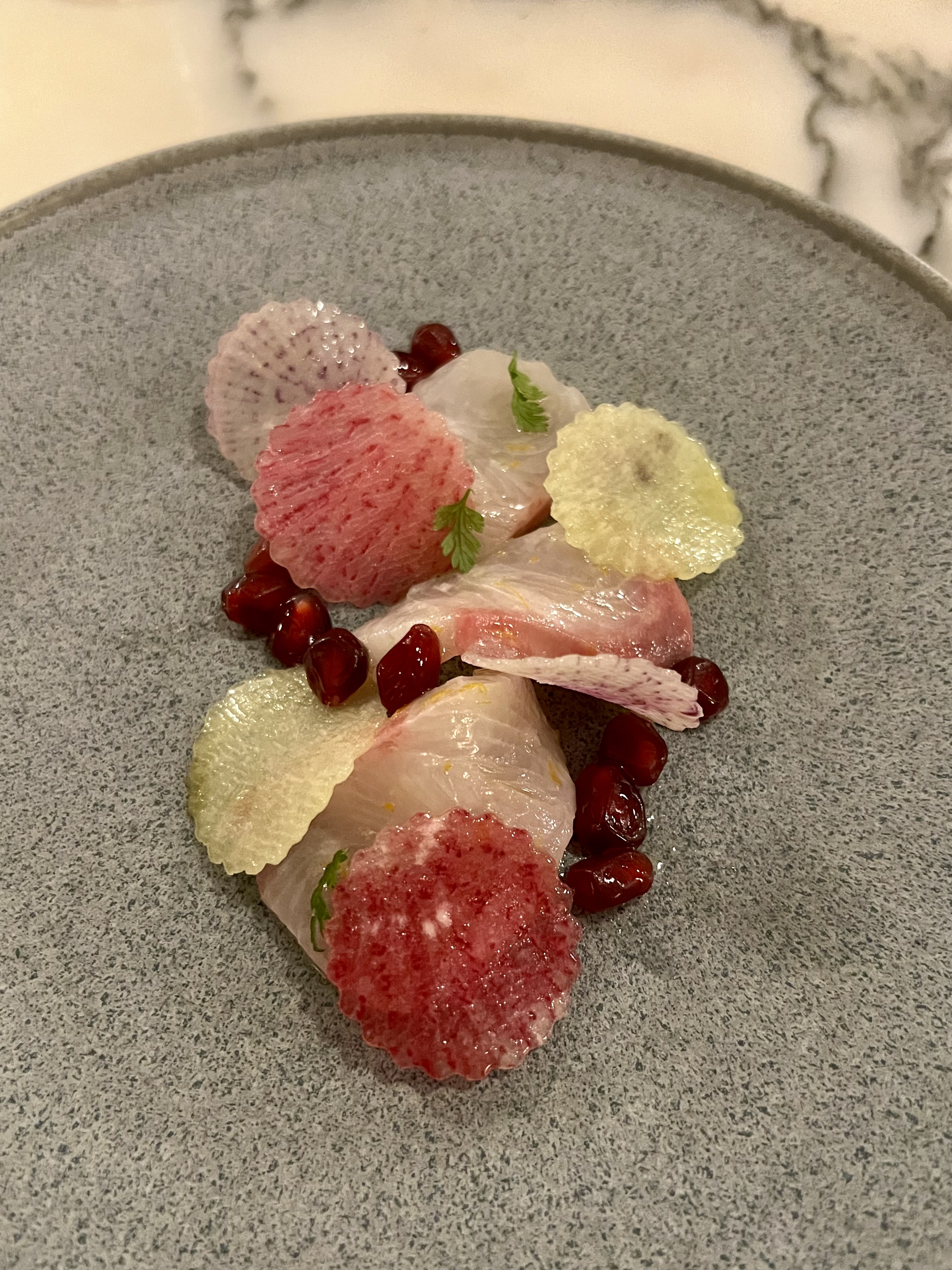 We ordered the five course tasting menu and wine pairing… but I don’t know that I’d go that route again. I watched that salt-crusted fish go out twenty times and had food envy. The five courses that we won looked great, but were hit or miss, with monkfish being a complete whiff (somewhat rubbery and the flavors didn’t work for me). The wine had standard 2.5-3x mark-ups (for the ones I recognized) which is why we opted for the pairing. We’d go back and choose our own adventure to give it a second chance, but would definitely pass on the 5 course. Pics below in the summary for easier thread navigation.