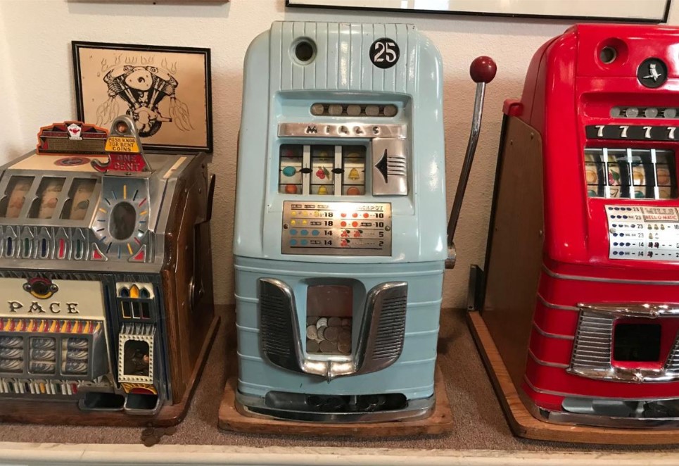 Ken has hundreds of slot machines in various states of restoration. Most machines were built between the 1920s – 1960s.