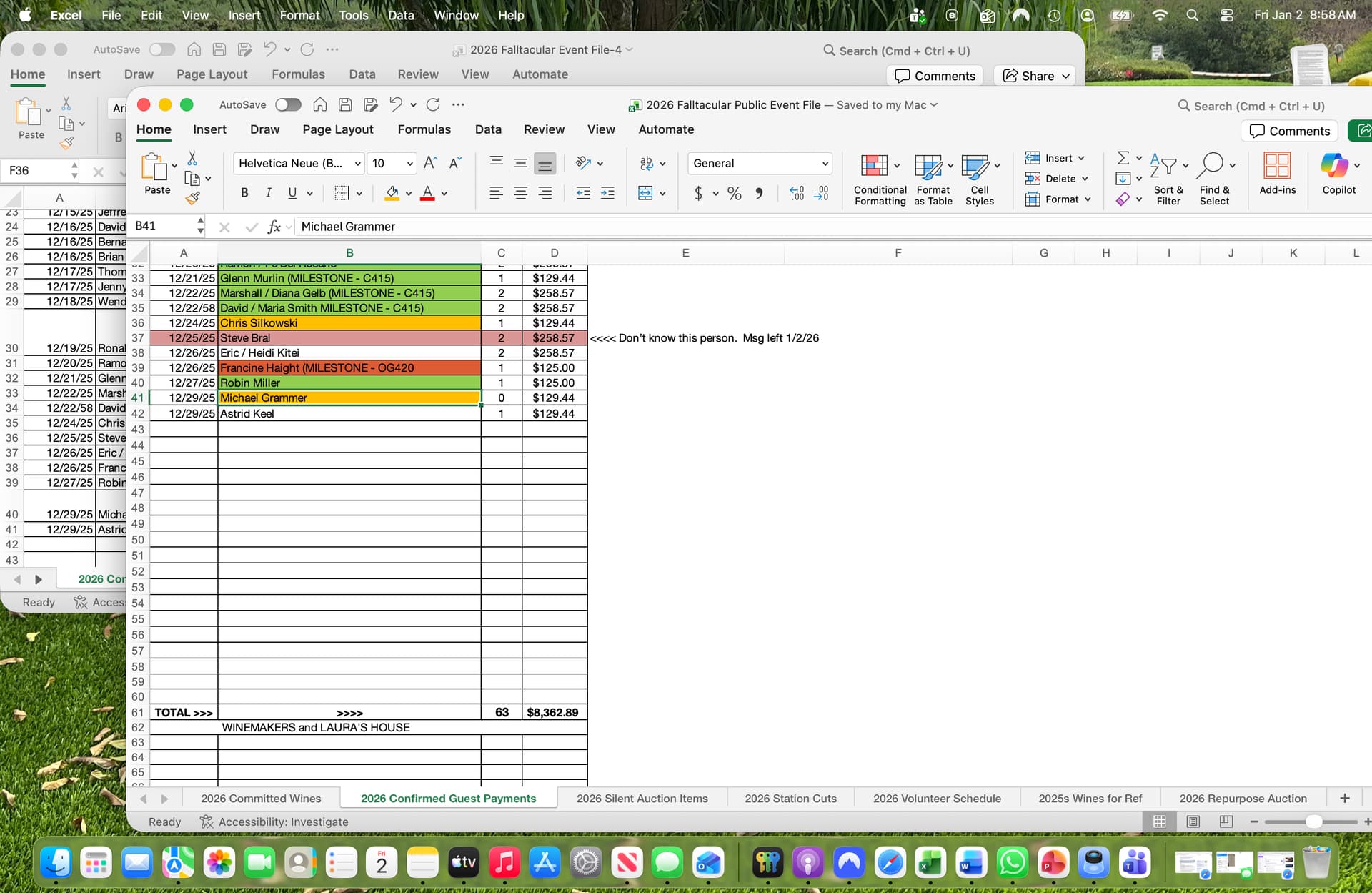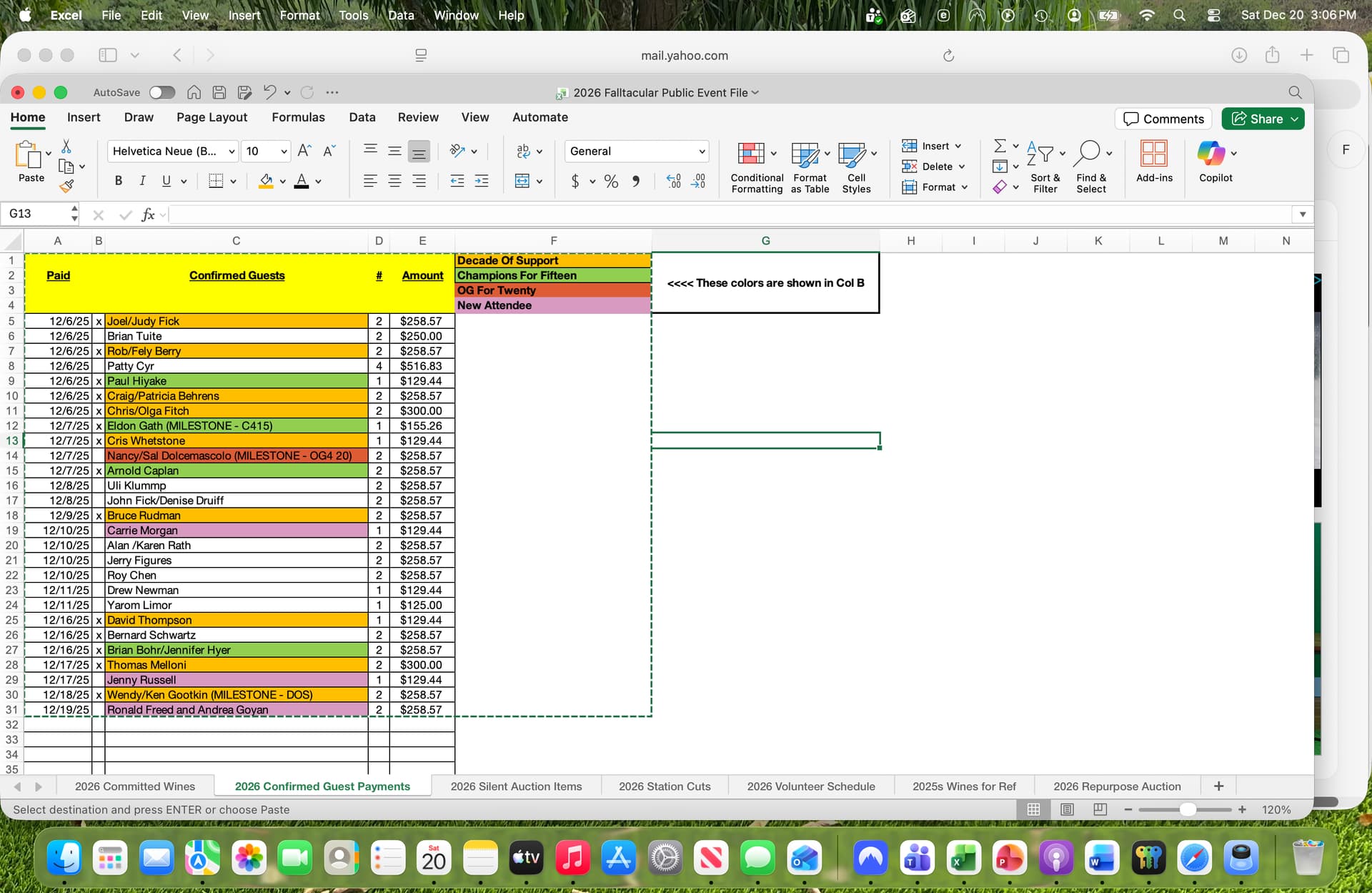 Happy new year everyone. We have an update on attendance, now passing through 60 paid mark, collecting over $8,000 so far for the tickets. Thank you for that support. The list of paid tickets is noted below. I’ll continue to use screen shots, which looks clunky but it works.