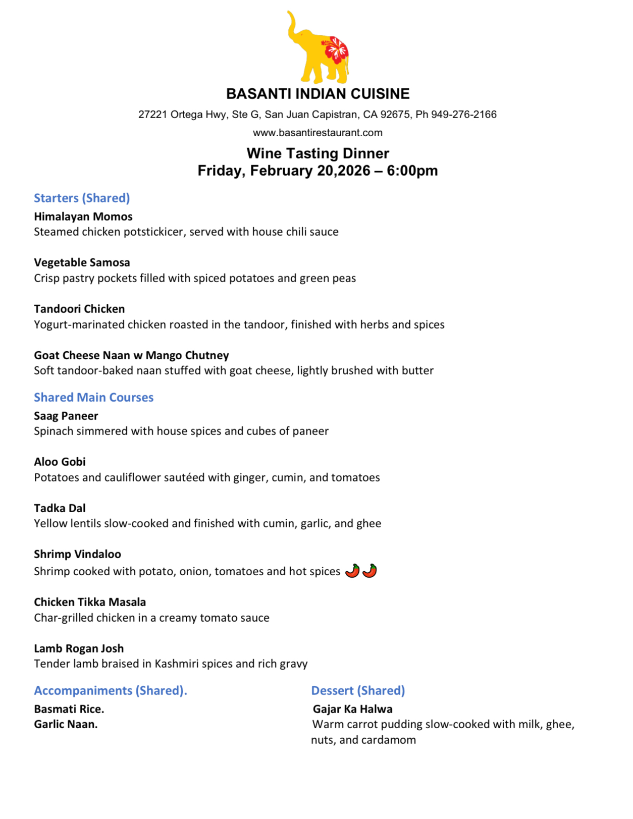 I reached out to Basanti Indian Restaurant in San Juan Capistrano and they want us back and can accommodate our current 22 person roster. If it grows enough we can buy them, out for the evening. @Arnold_Caplan will Yarom join us like last year? Summoning @Mike_Stoneking and @Dana_Stoneking are you two coming down Friday?