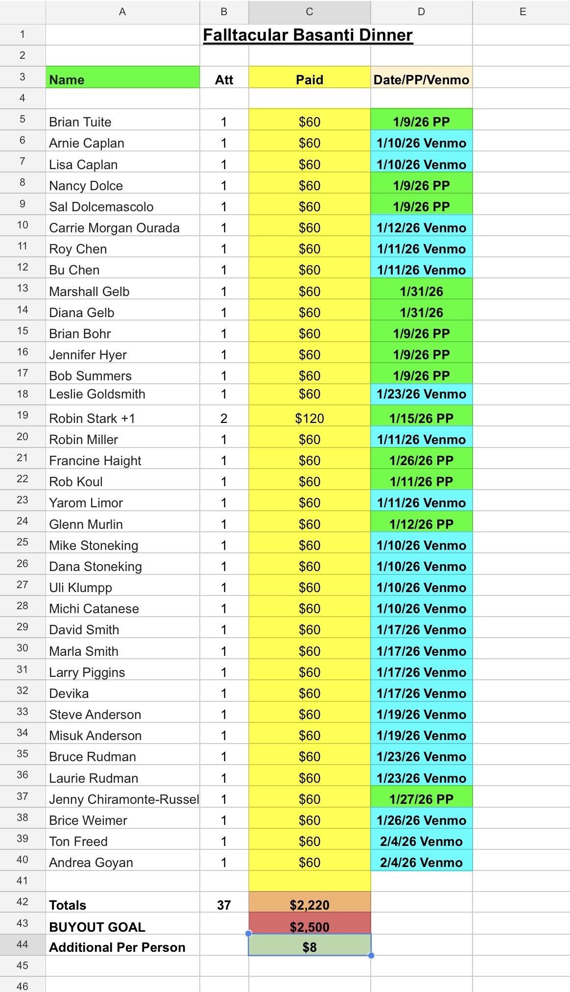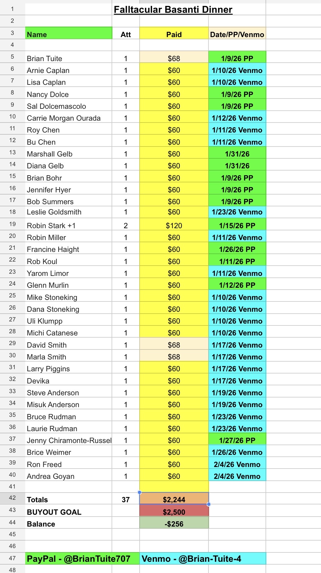 We’re up to 31 committed and 27 paid as of 1/19/26. At 40 we can buy out the entire restaurant for the night. If anyone else in the OC area would like to join us please let me know. We need a confirmed attendance list paid by Sunday 2/15/26.