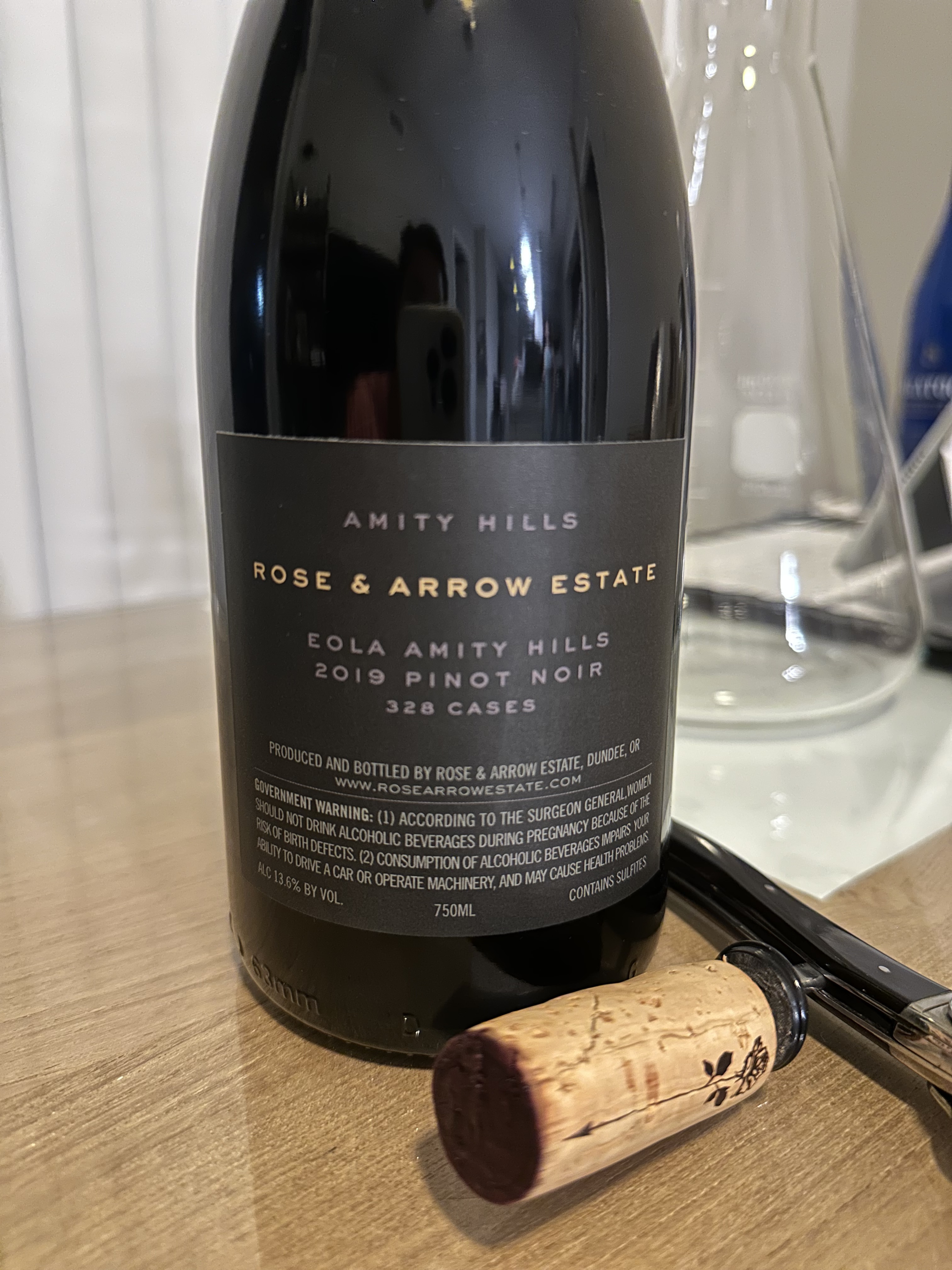 The bottle was a 2019 Rose & Arrow Amity Hills acquired from Last Bottle.