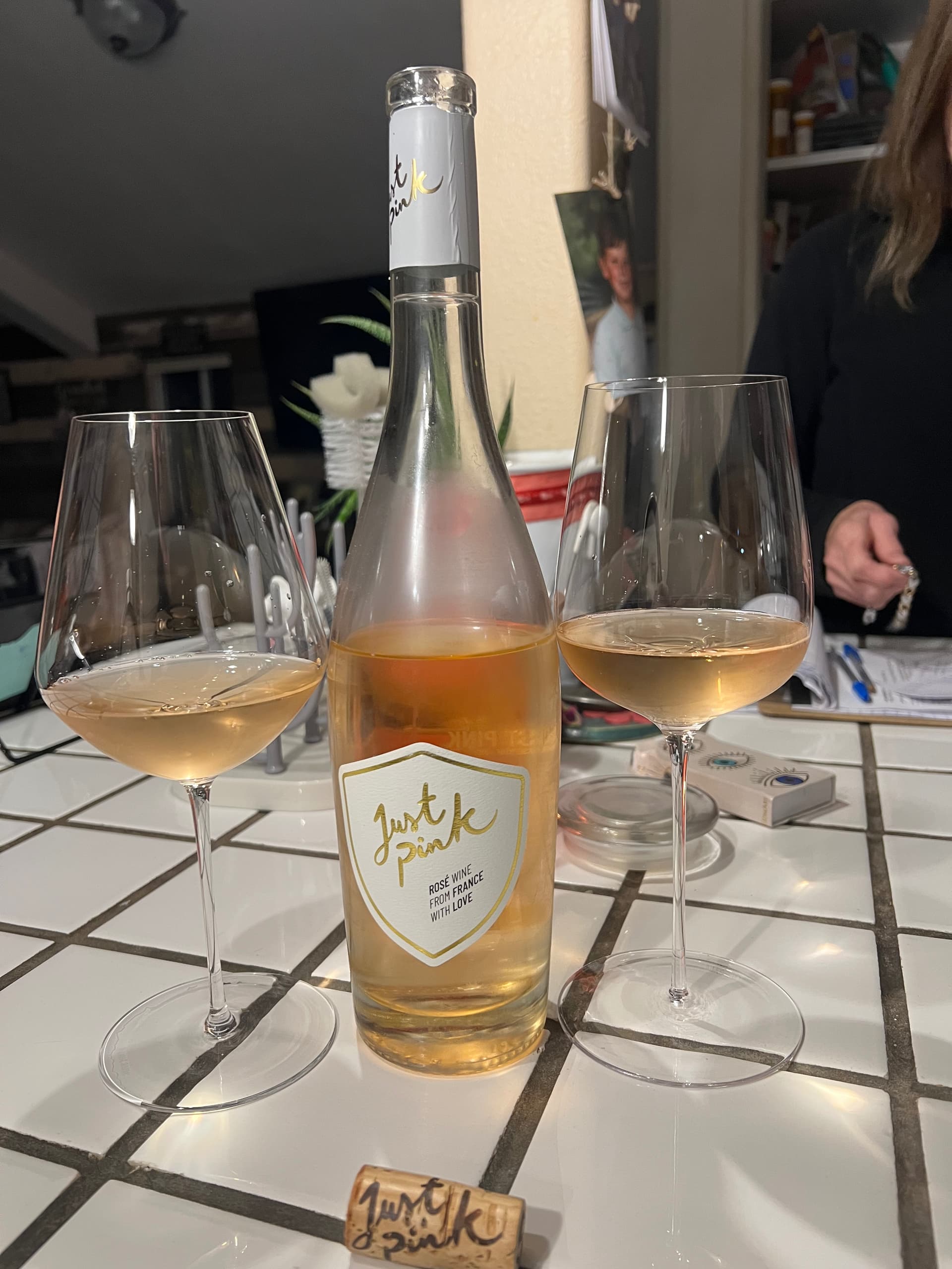 Pobega’d a Just Pink Rosé tonight. I bought my wife a case and I’m not sure what she loves more. The wine, the label wording or the heart stamp on the cork. Thanks @Anne_Fogerty!