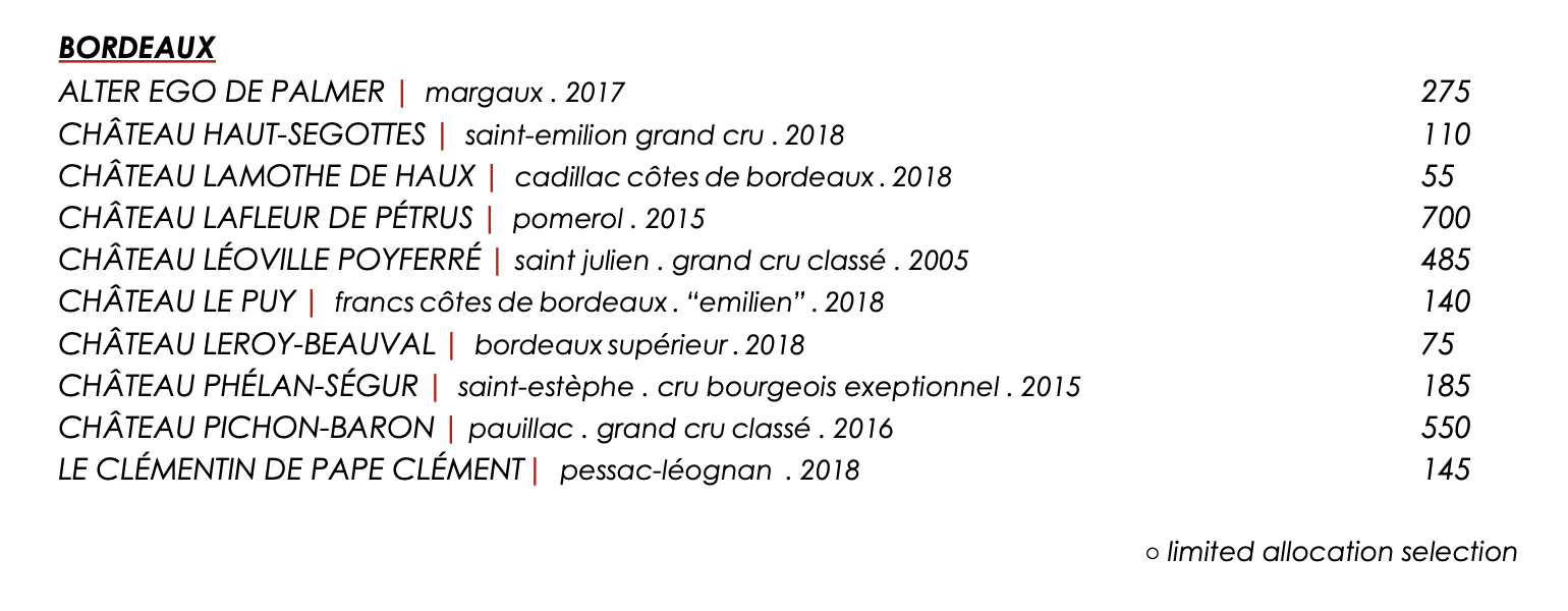 2015 Phelan Segur $185 – underrated producer, excellent vintage,. decant to start the evening and will be ready when you get to it