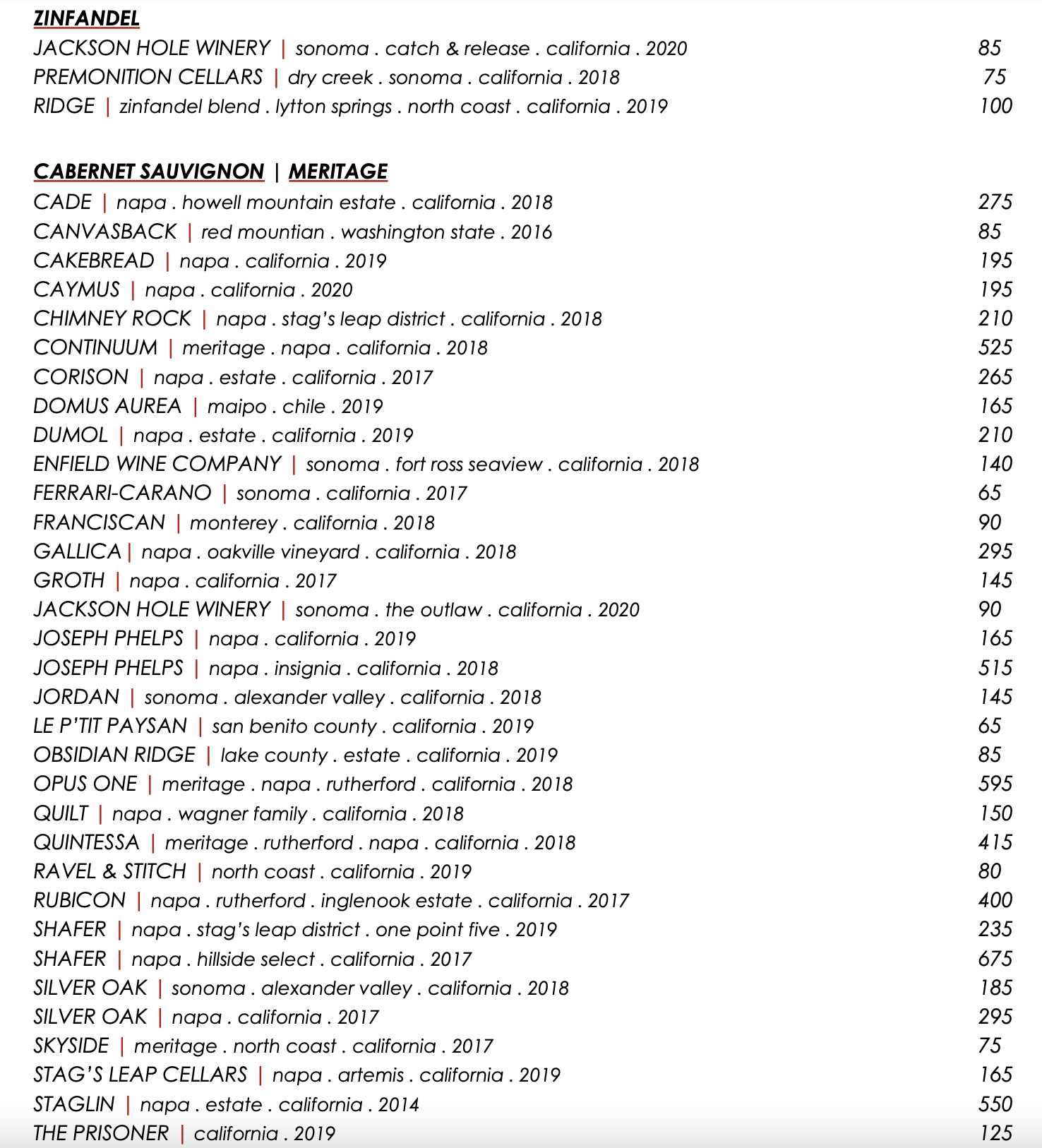 Looks like nice markups on that list. Napa Cabs are more than double retail prices.