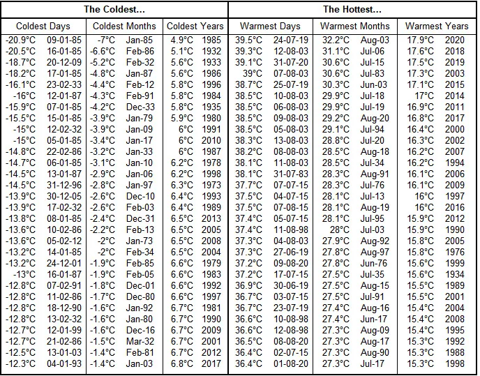 Thanks— it does help put things into perspective. I think his NB is important to understand the delta between the cold and hot temp averages (I couldn’t quite believe them at first): “ NB: The average temperatures (both months and years) for cold are the average night-time temperatures. Likewise for the heat they are the average daytime temperatures”.
